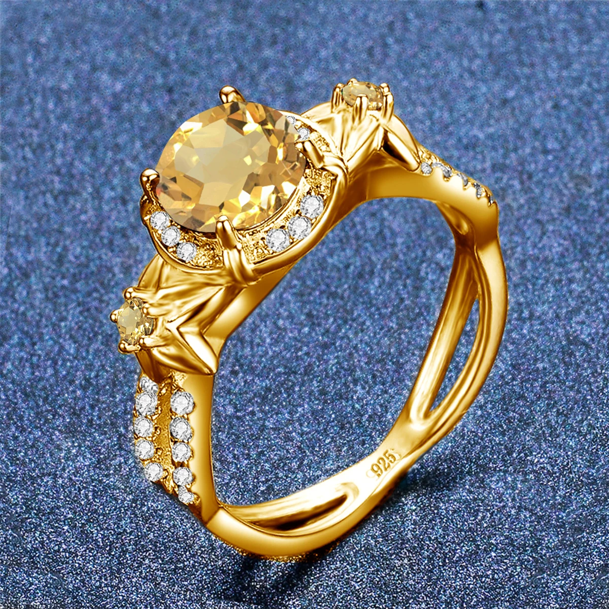 Кольцо из серебра 925 пробы, 14 к, с желтым цитрином и цирконом