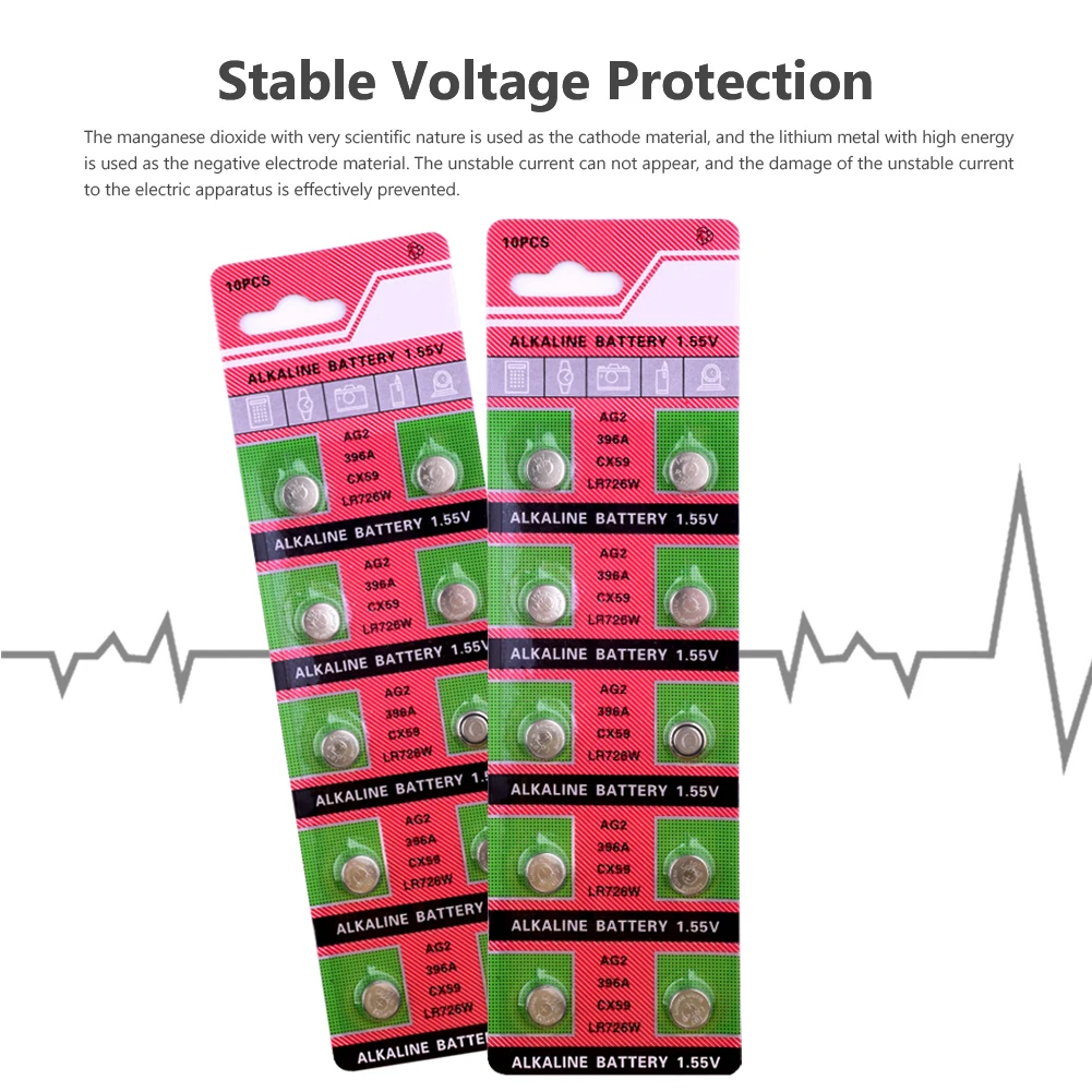 Технические характеристикиНапряжение: 1,55 в Диаметр: около 7,9 мм/0,31''Модель: AG2Также может быть известен как: 196, 396, 536, 556, 607, 1164SO, 280-28, 396-1 Вт, 396A, 397B, AG2, CX59, D396, D397, G2, GP397, L726, LR726, RW411, S30, S726E, SB-AL, SG2, SP397, SR59, SR59L, SR59W, SR726, SR726SW, V397 Использование: лазерная указка, cБлокировка, часы, калькулятор, компьютер, материнская плата, Электронный журнал, электронные весы, цифровая камера, КПК, пульт дистанционного управления, видеокамера,Кардиостимулятор, электронный слуховой аппарат,Электронная игра, электронный инструмент, mp3-плеер, цифровой диктофон, игрушка, глюкоза в кровиМетр, Измеритель холестерина, сотни других электронных продуктов. Посылка в комплекте30 батарей AG2