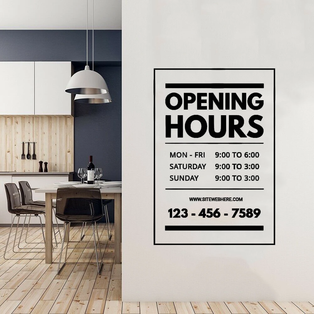 Виниловая наклейка PW972, время работы магазина на заказ, настенный знак-наклейка, для кофейни, парикмахерской, окно дверь стена