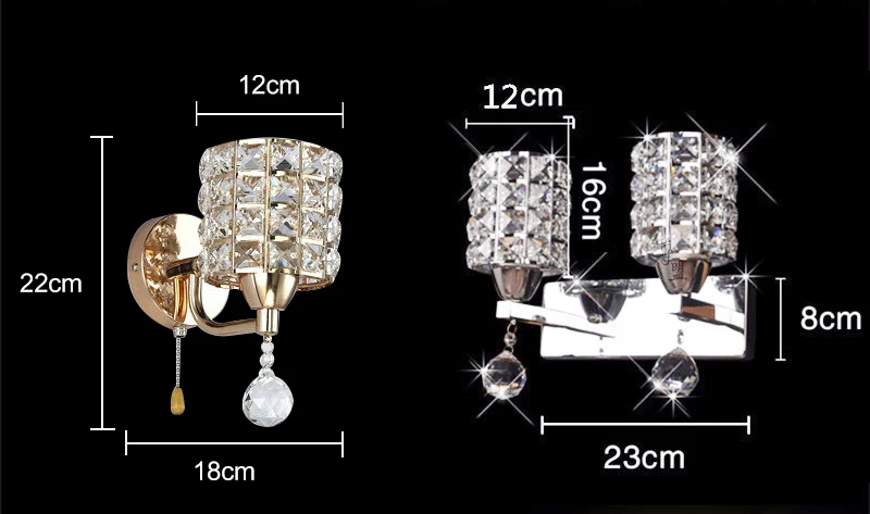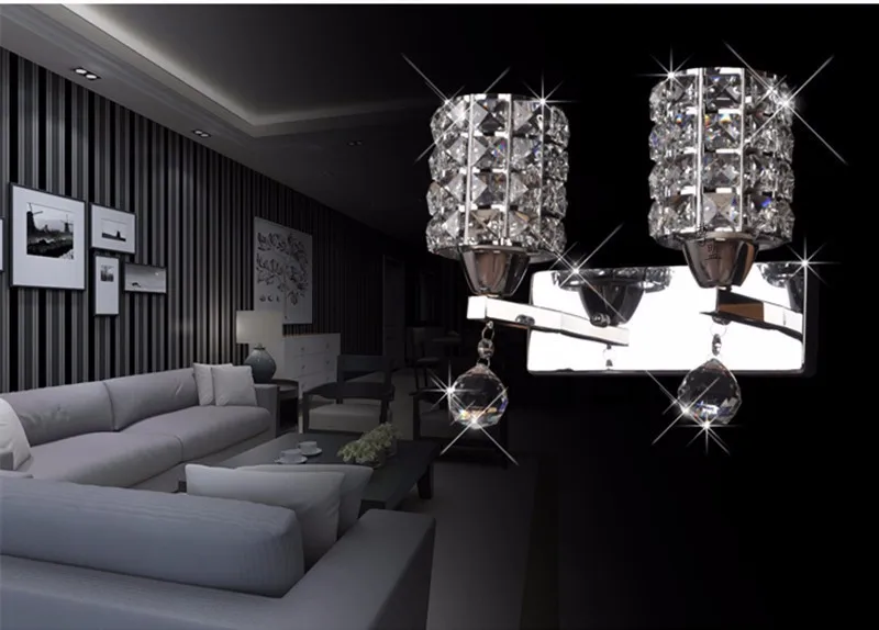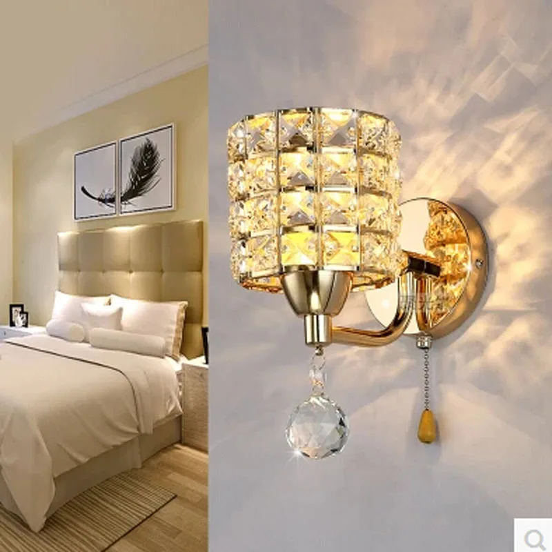Выключатель на цепочке, Хрустальный настенный светильник, современное освещение на молнии из нержавеющей стали, настенные бра