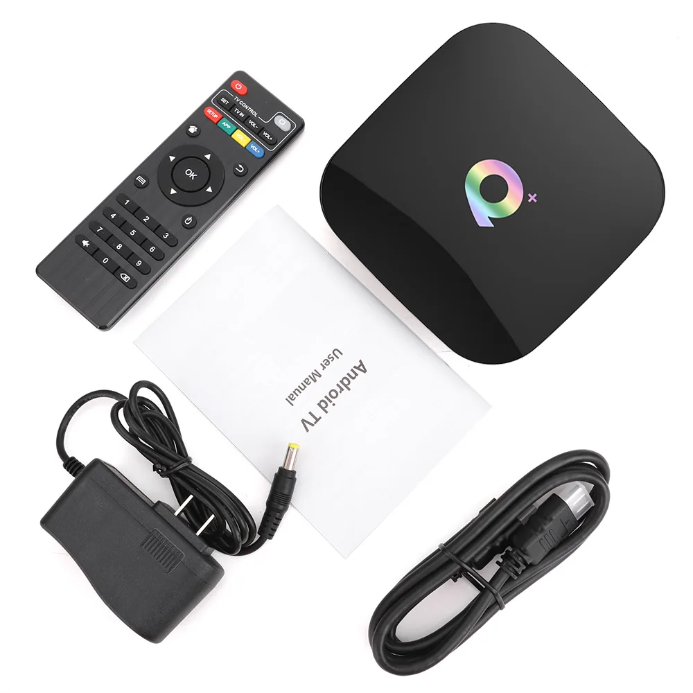 1 x ТВ-приставка Q plus android1 х адаптер питанияКабель HD-1 шт.1 x пульт дистанционного управления (батареи не входят в комплект)1 x Руководство пользователя