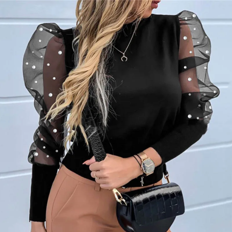 Элегантная прозрачная блузка с рукавами-фонариками, рубашки, Женска...