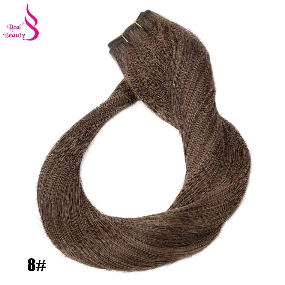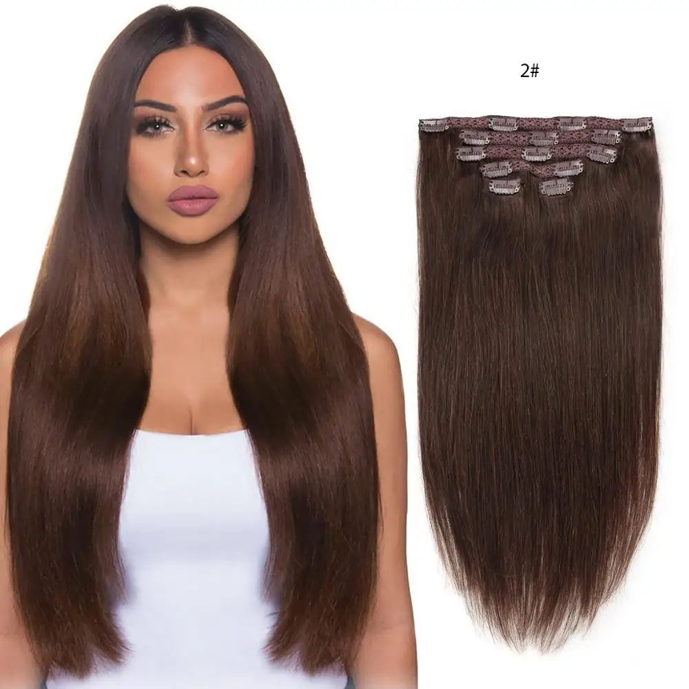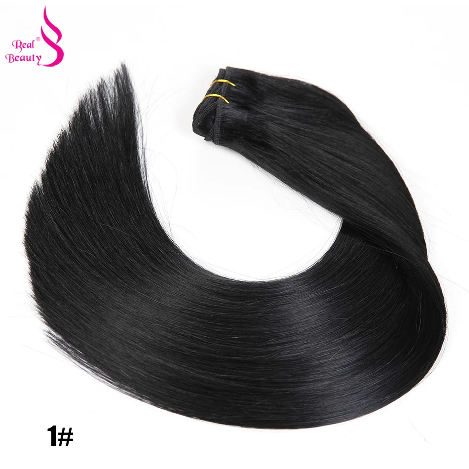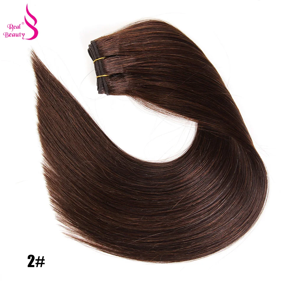 Натуральные человеческие волосы для наращивания на заколках, 70 г, бразильские прямые шелковые волосы Remy, 7 шт.
