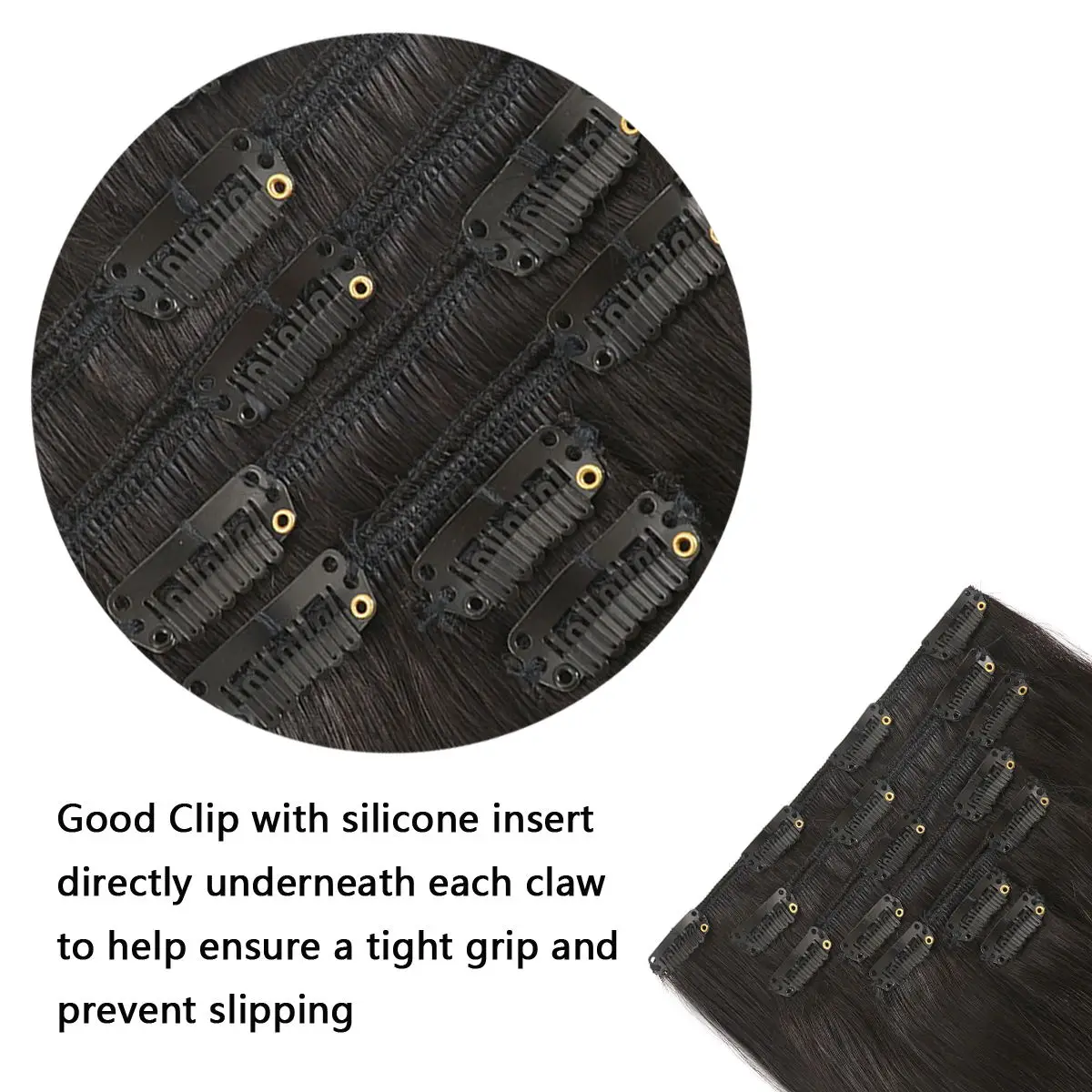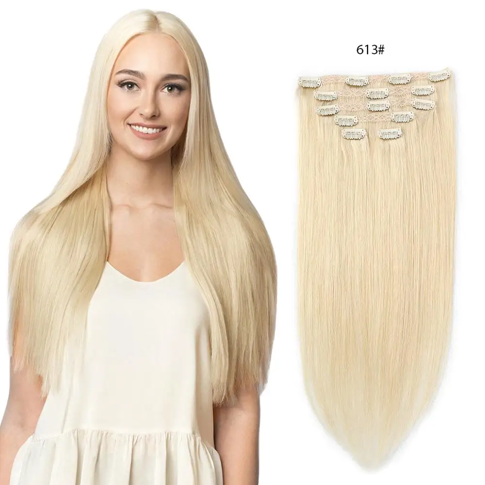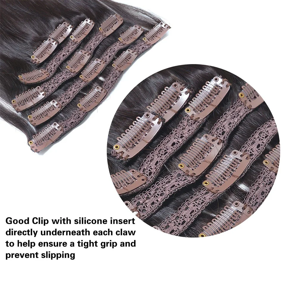 Натуральные человеческие волосы для наращивания на заколках, 70 г, бразильские прямые шелковые волосы Remy, 7 шт.