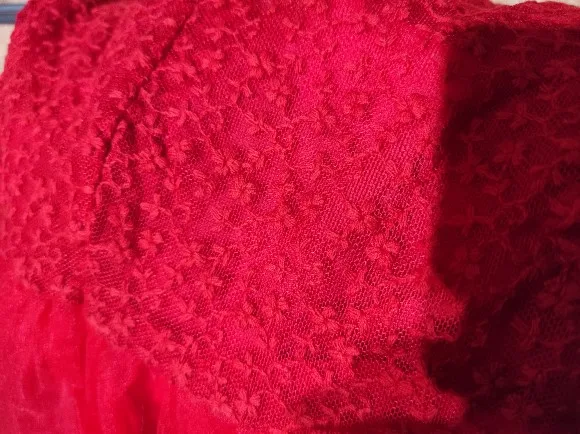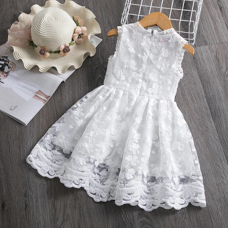 Платье для девочек, летнее, красное, с кружевной вышивкой