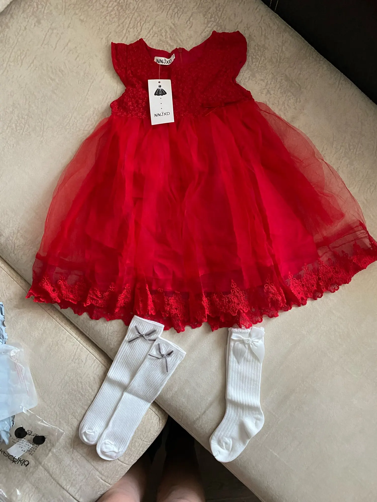 платье красивое, на 3 года заказала платье 100см - она мелкая ей подошло в самый раз. Доставку получила ровно через месяц, но т.к. трек 10 дней показывал что товар на таможне. Начала выяснять оказалось что товар доставили 10 дней назад.
