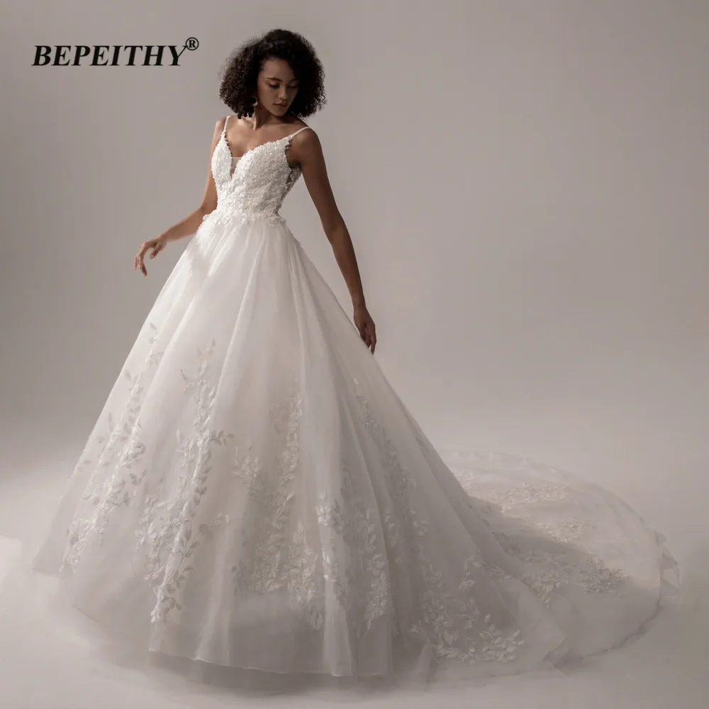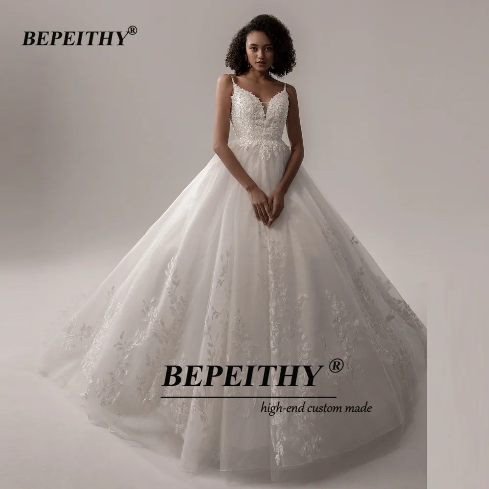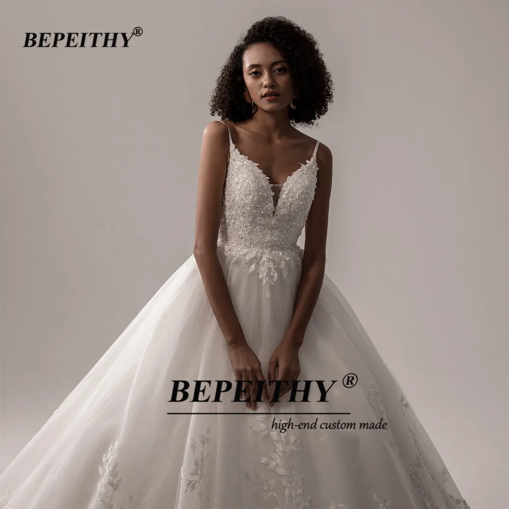 BEPEITHY кружевное свадебное платье на тонких бретелях для невесты 2021 бальное платье без рукавов цвета слоновой кости индийское свадебное платье новое