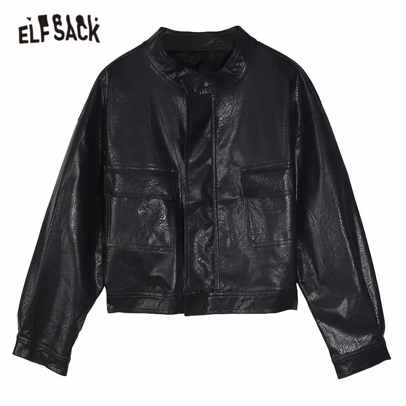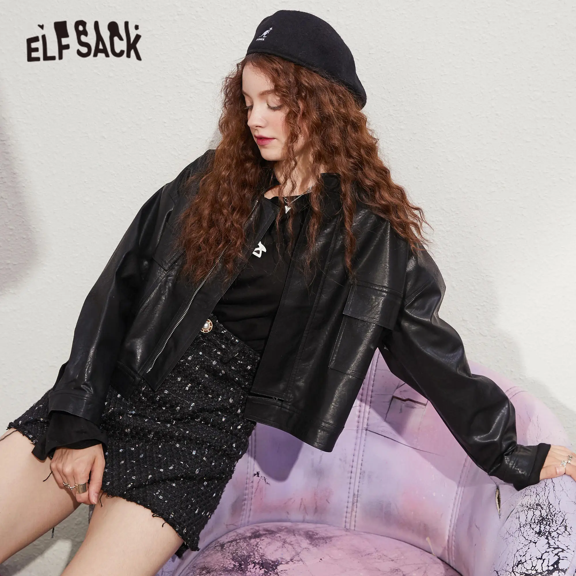 ELFSACK Locomotive женская кожаная куртка большого размера на молнии, с длинным рукавом, повседневная, короткая, повседневная, осень 2020