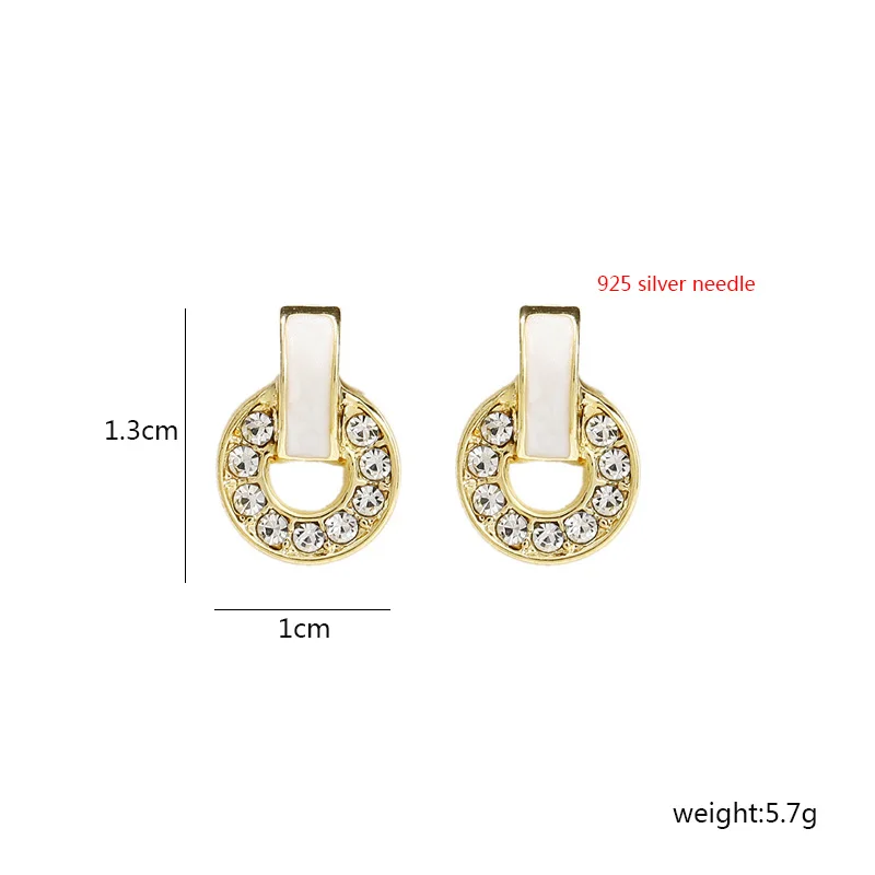 Material: Alloy,rhinestone Quantity: 1pair Size:1.3*1cm Net weight:5.7g Packing: OPP package The needle is 925 silver needle, it will be bend easily,but can be used normally, if you mind it, please consider carefully before you buying it.