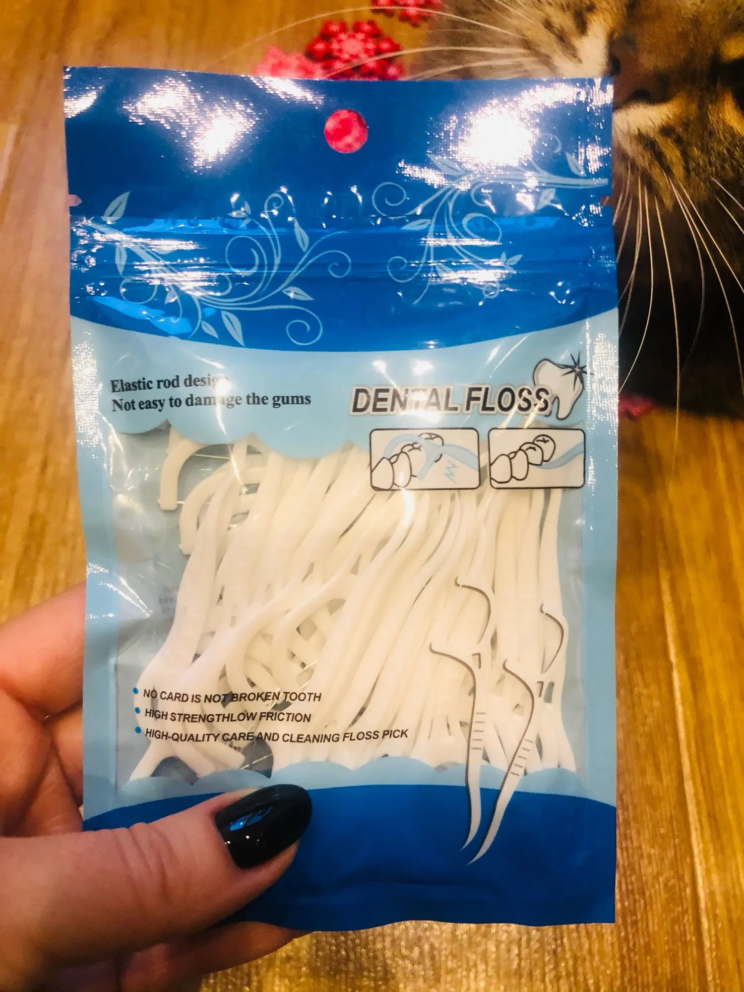 Заказ пришёл достаточно быстро. Упаковка - обычный пакет. Покупала за за 114 рублей с копейками. В первый раз решила попробовать такой формат зубной нити. В принципе, понравилось. Держать намного удобней, рот раскрывать так широко уже не нужно. Проще намного использовать. Пока нашла только один недостаток, что нить может защепиться за зуб, если он не очень ровный, и вытащить как стандартную нить не получиться. Нитки очень прочные, крепятся тоже очень прочно. В общем рекомендую . С продавцом не общалась.