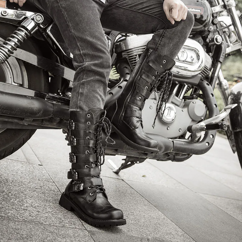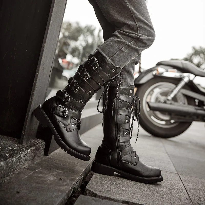 Мужские армейские сапоги выше колена, черные мотоциклетные сапоги и...