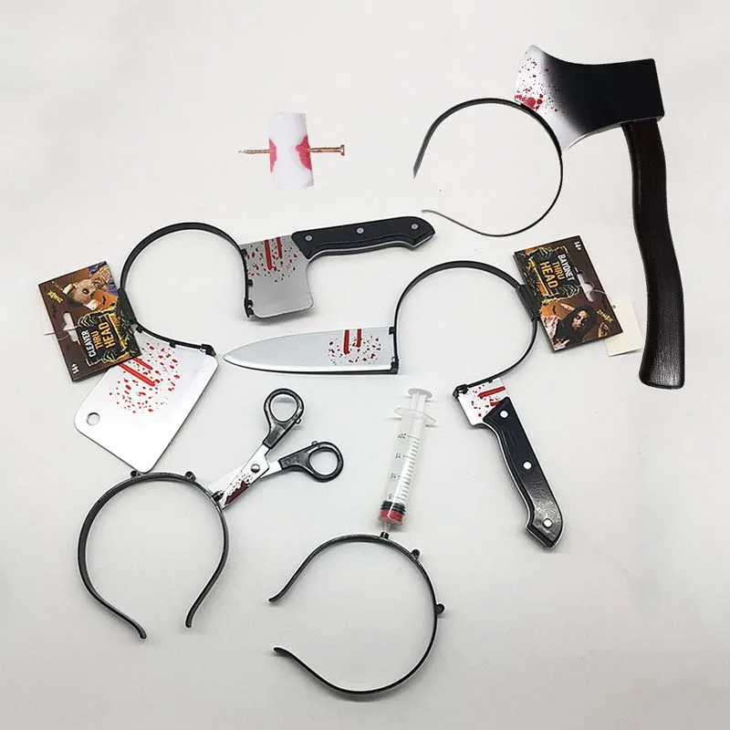 Украшение на Хэллоуин, креативная ужасная повязка, страшные шутки, ужасы, вечерние, с имитацией крови, топором, ножом, повязкой для волос, ужасающая опора, сделай сам