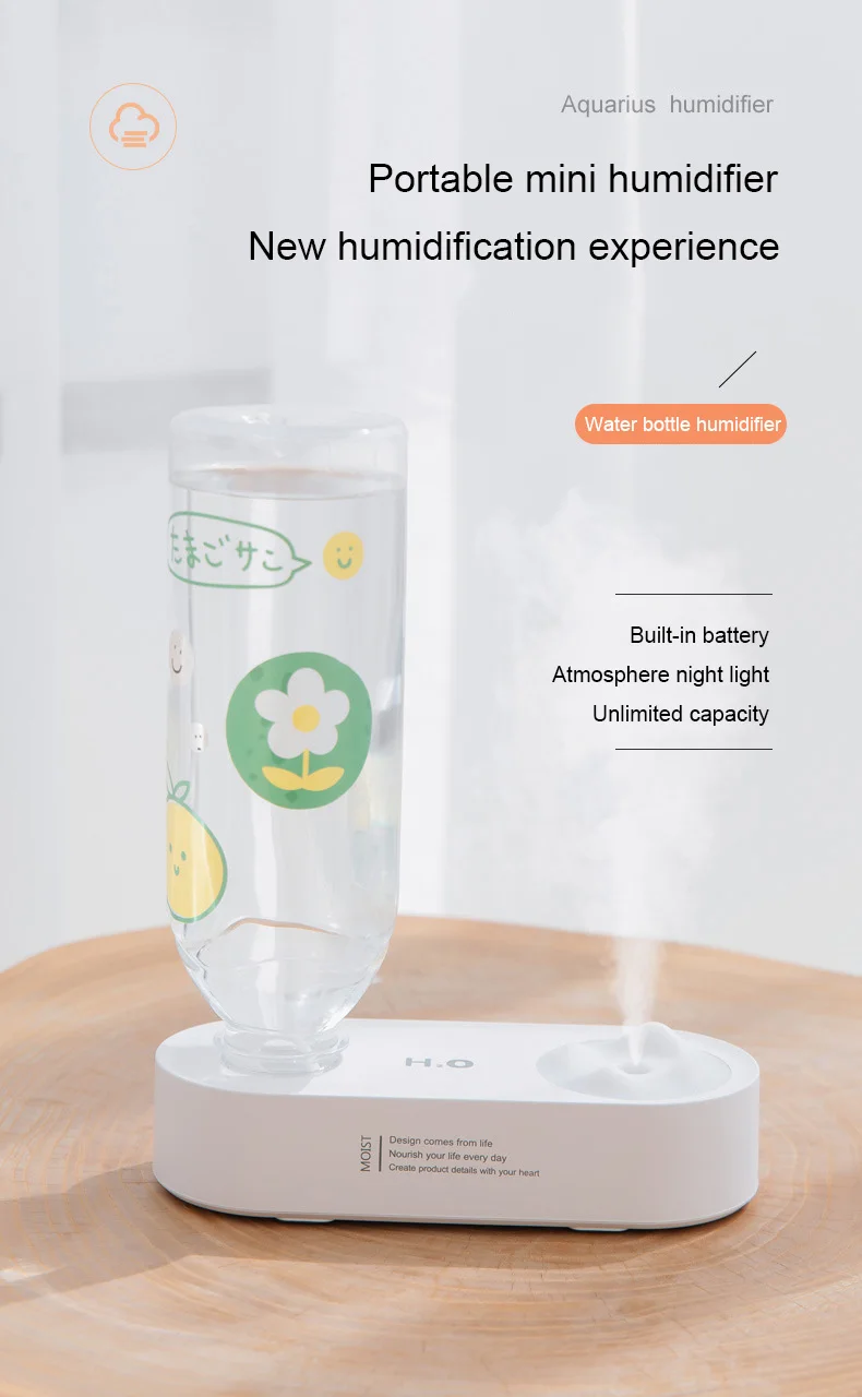 DMWD USB-бутылка для воды, ультразвуковой увлажнитель-диффузор Fogger Air, мини-Электрический аэрозольный аппарат для ароматерапии, заряжаемые увлажнители