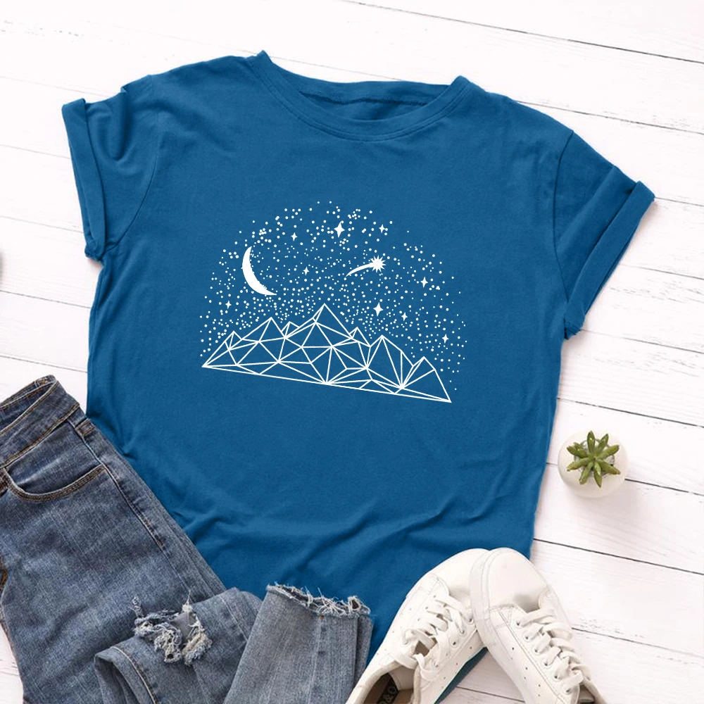 Футболка женская хлопковая оверсайз, с принтом звездного неба