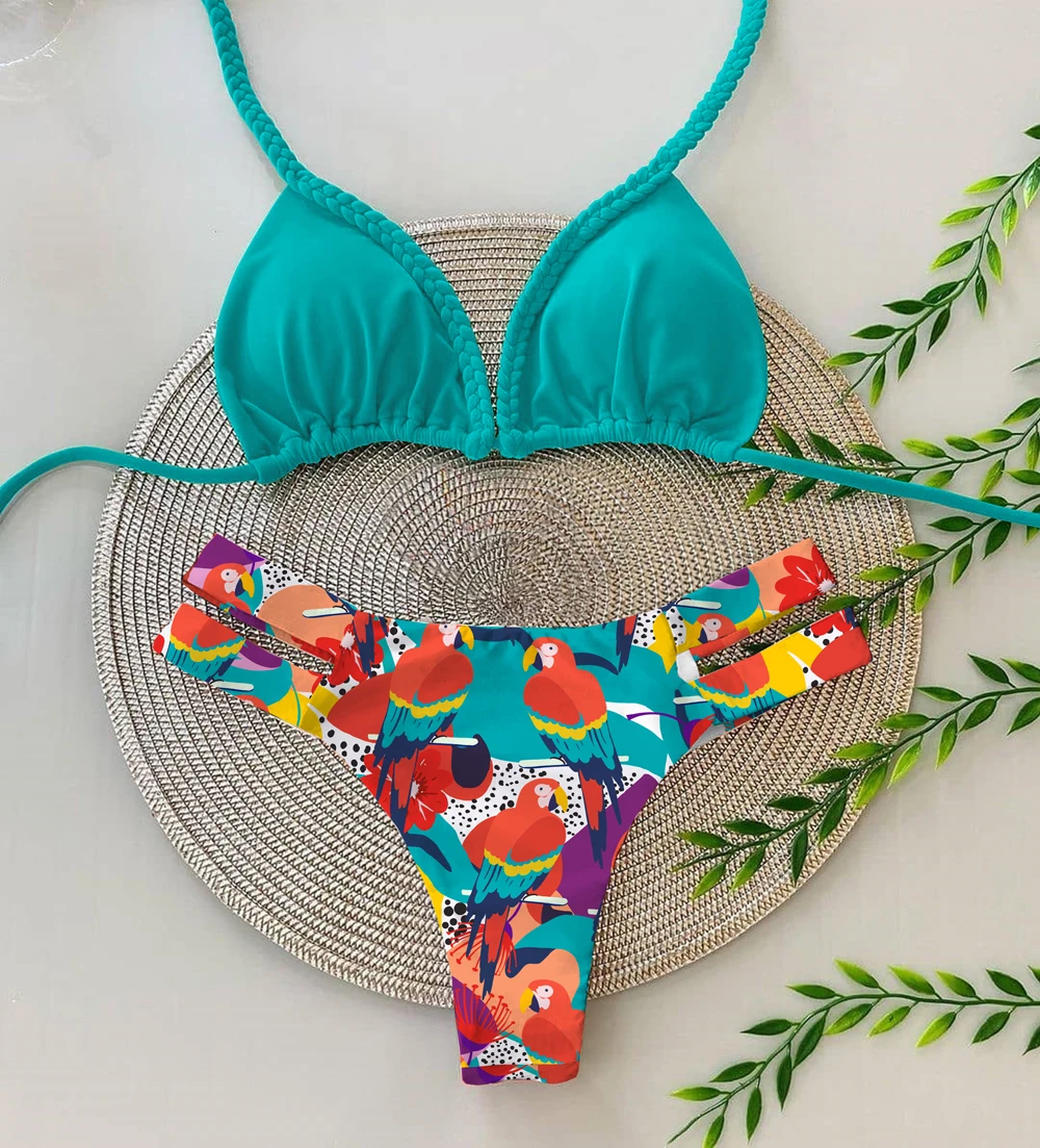 Женский комплект бикини, Бразильское бикини пуш-ап с принтом, 2021