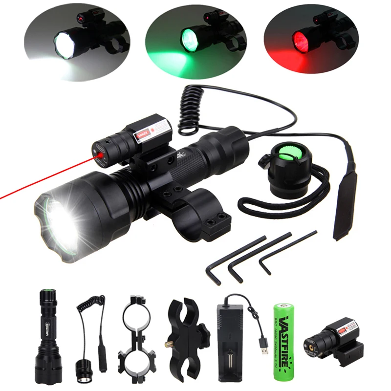 Тактический охотничий фонарь XM-L Q5, фонарь для винтовки, светильник, лазерный точечный прицел, переключатель, рельсовое крепление + 18650 + зарядное устройство