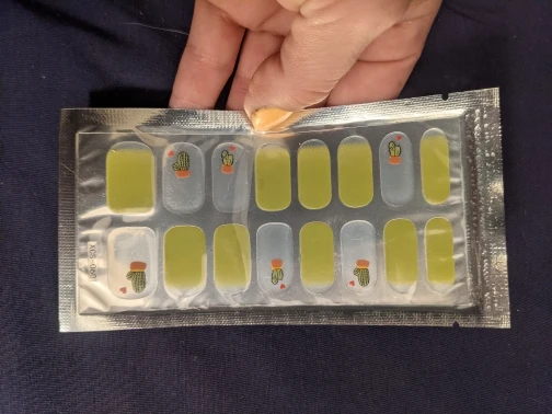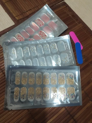 Ну, может, только чуть-чуть цвет расходится с фото на странице продавца, некритично. Хорошая, надежная упаковка. В подарок положили 2 классные пилочки для ногтей: твердые, не гнутся, мелкозернистые. После первого использования наклеек отзыв дополню.