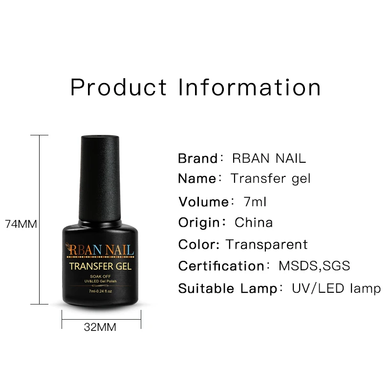 Прозрачный гель для ногтей RBAN NAIL 7 мл, переводная бумага для зв...