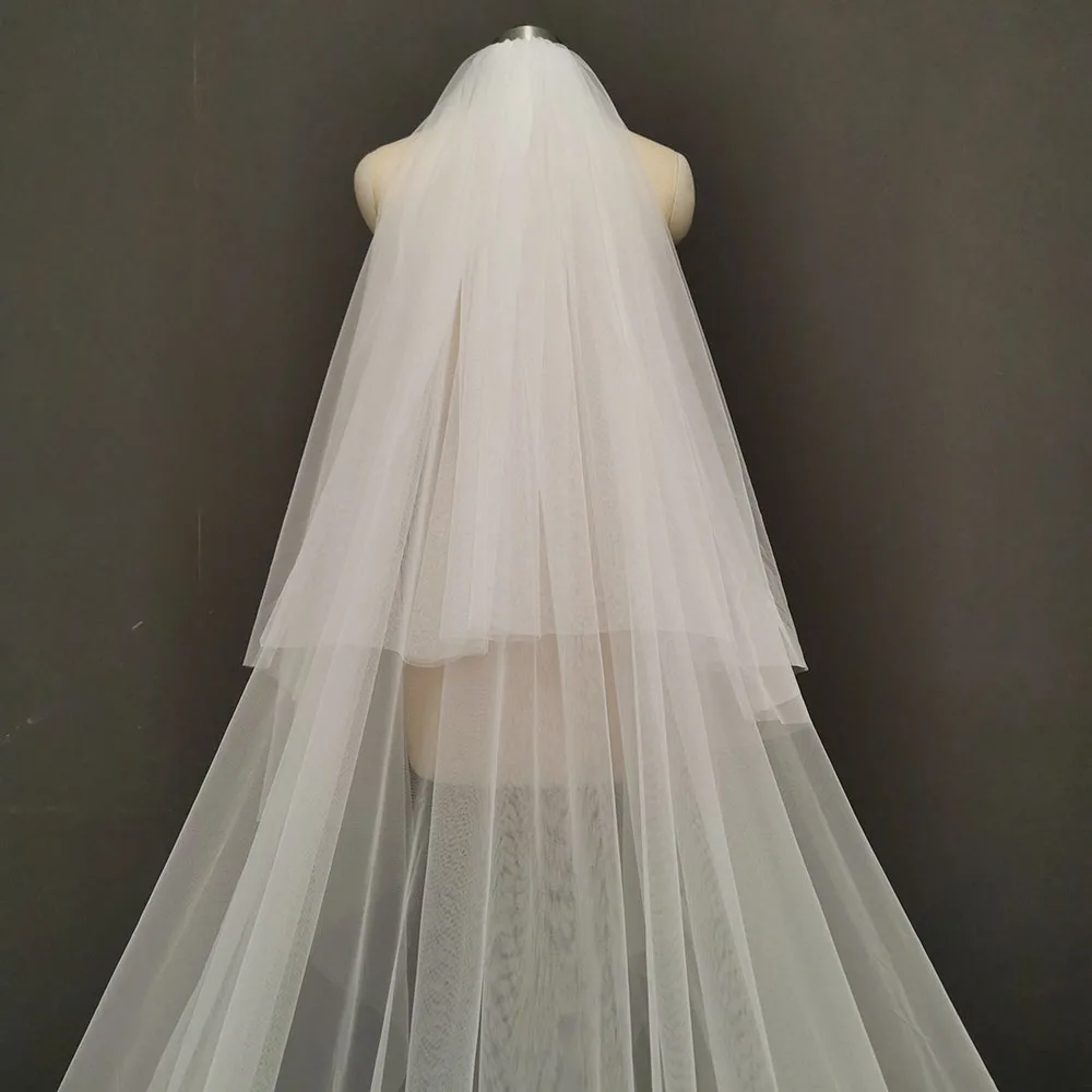 Реальные фотографии 2 T длинная кружевная свадебная фата 4 метра белая Фата цвета слоновой кости с гребнем Румяна головной убор невесты Свадебные аксессуары