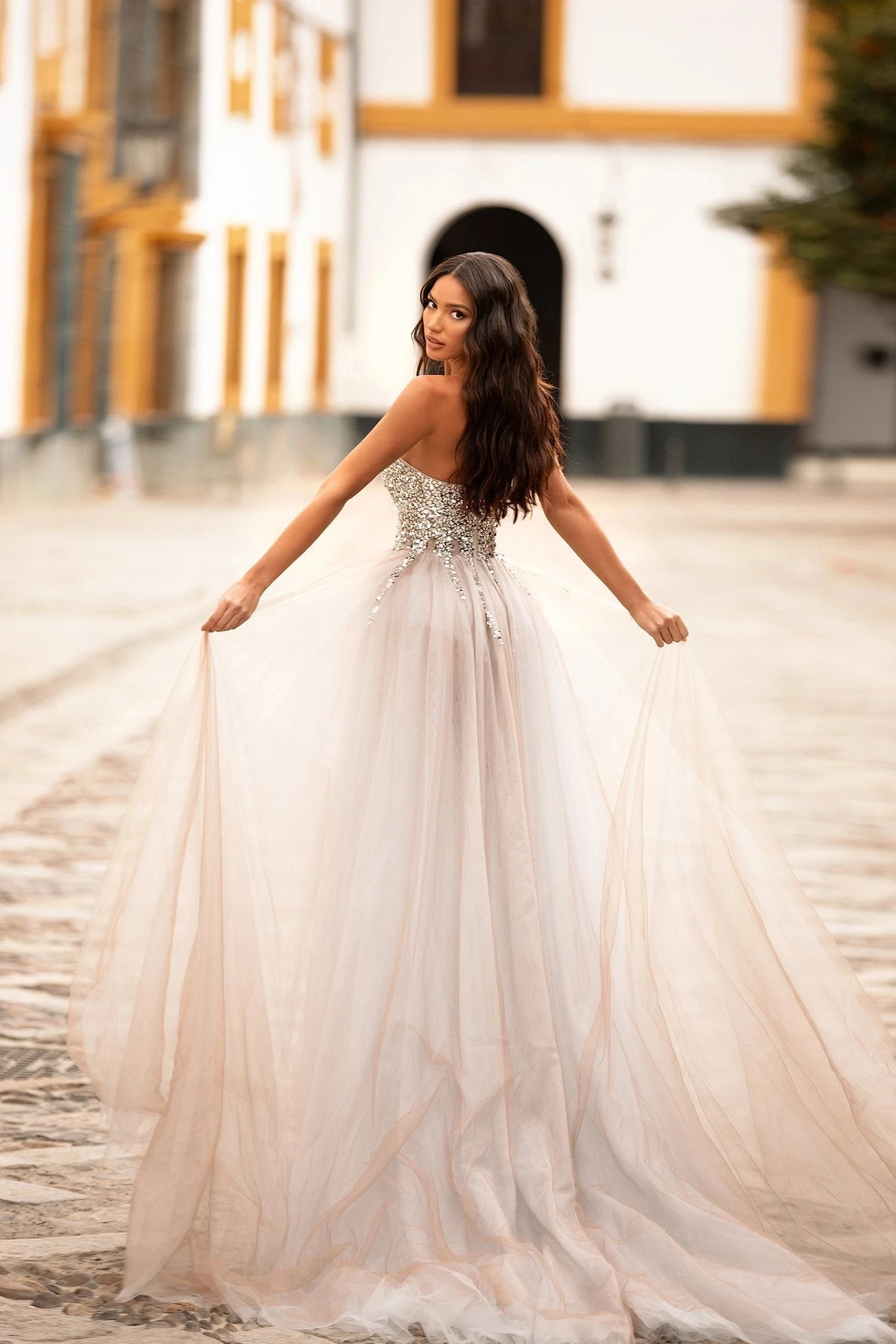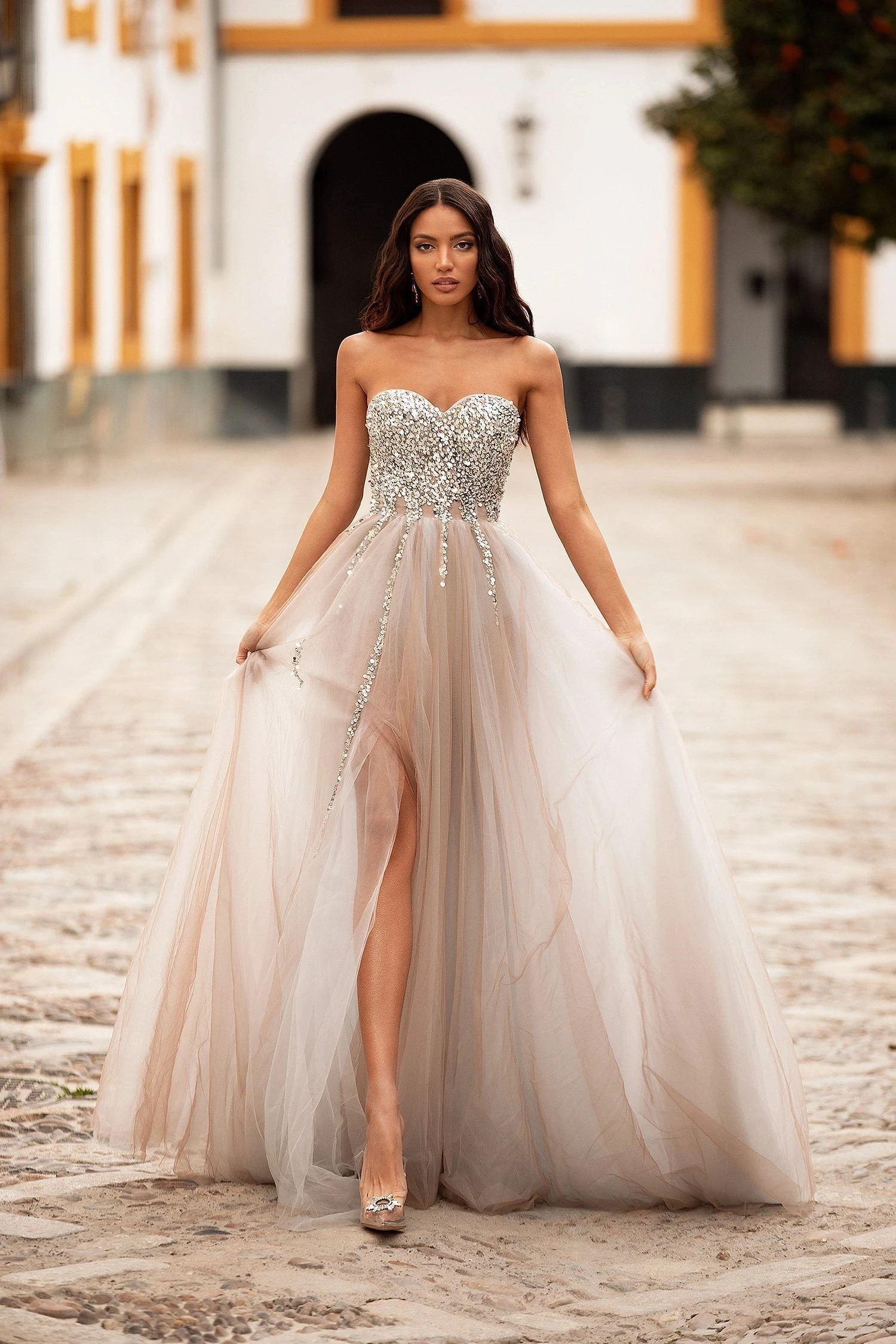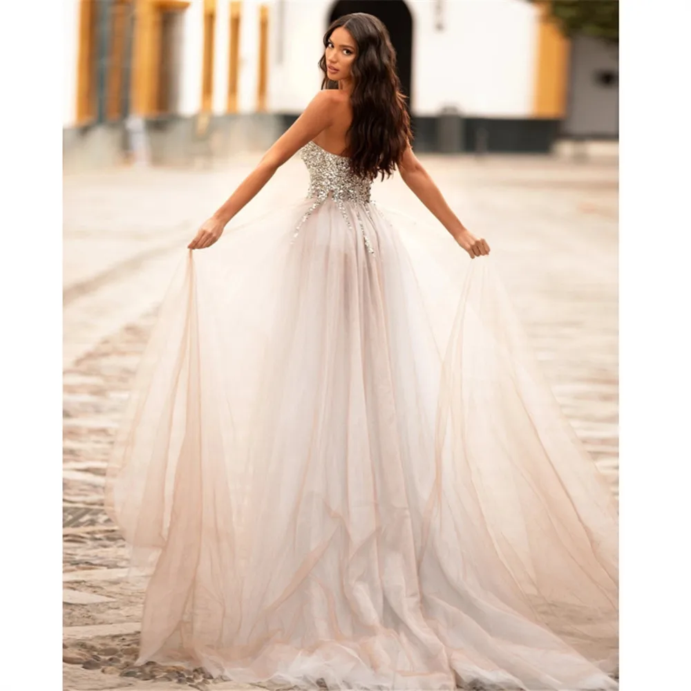 Женское вечернее платье YUNUO, длинное Тюлевое платье для выпускного вечера с серебряным бисером и разрезом сбоку, с открытой спиной