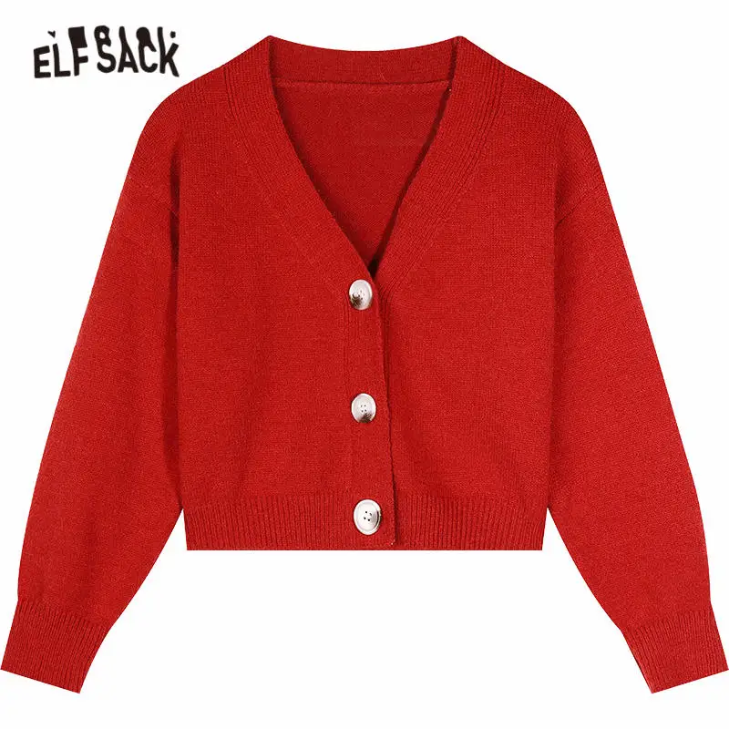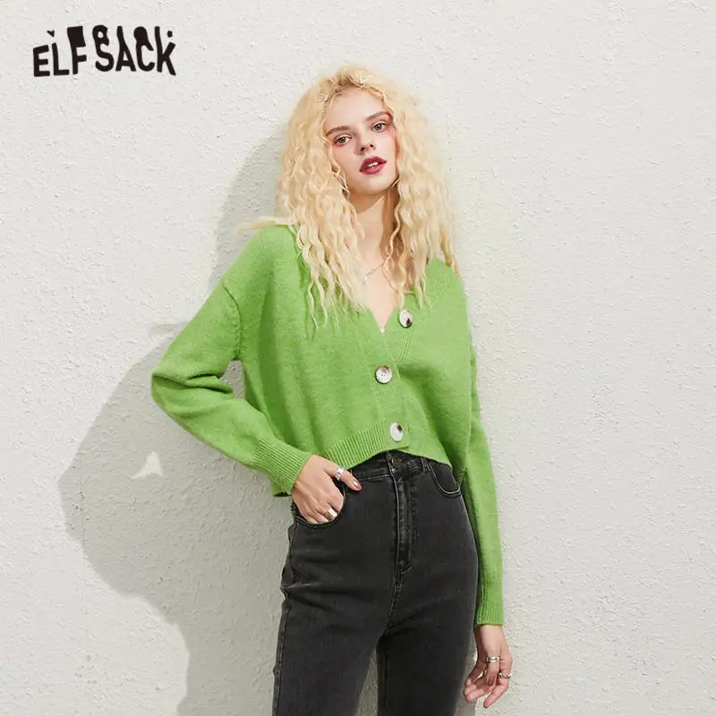 ELFSACK Радужная сплошная шикарная пуговица вязаный Повседневный Кардиган женские свитера, 2020 осень чистый длинный рукав Корейская женская, топы на каждый день