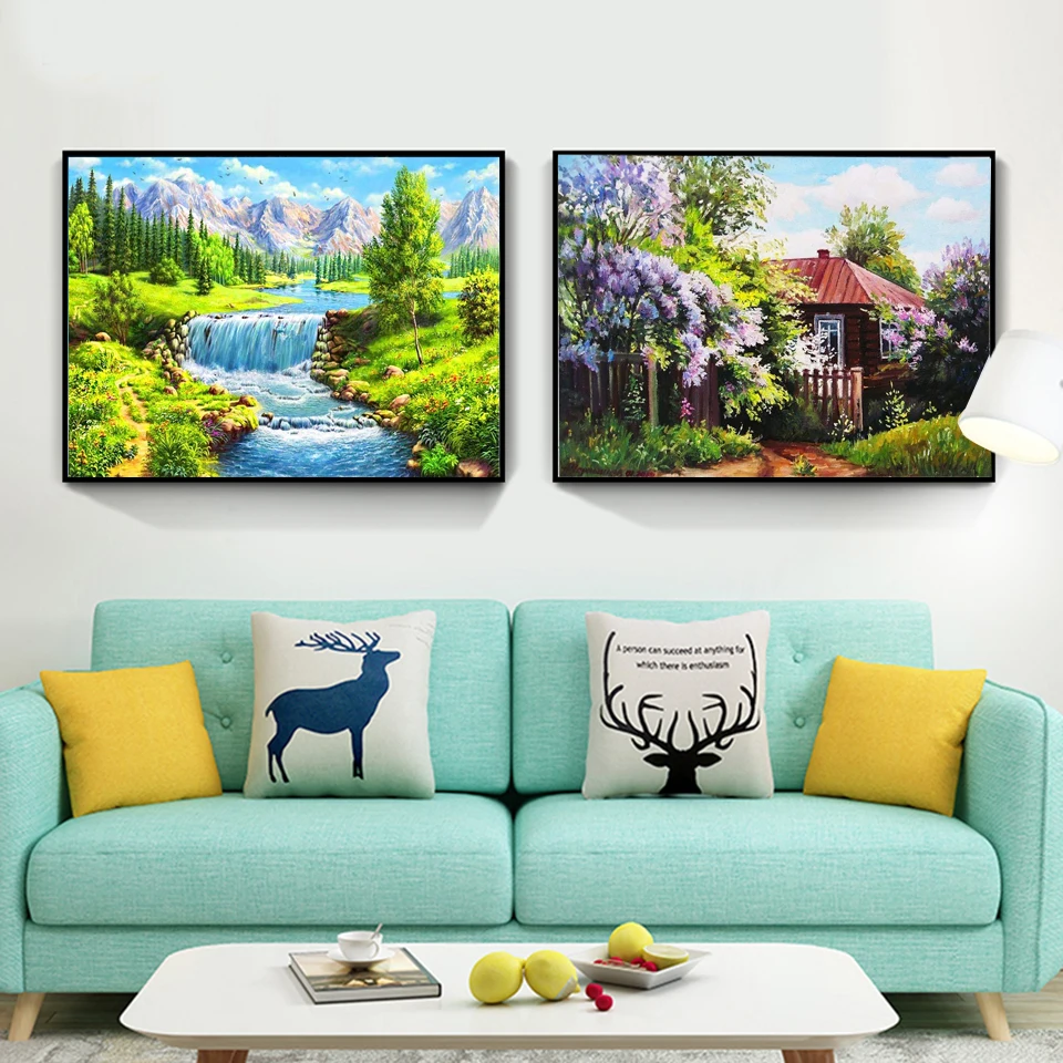 Алмазная вышивка, распродажа, искусственные квадратныекруглые пейзажи, картины, вышивка крестиком, мозаичный дом
