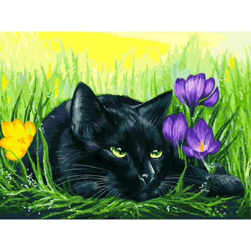 "Кот и крокусы" живопись по номерам 30*40 на картоне. Белоснежка. 3113-CS
