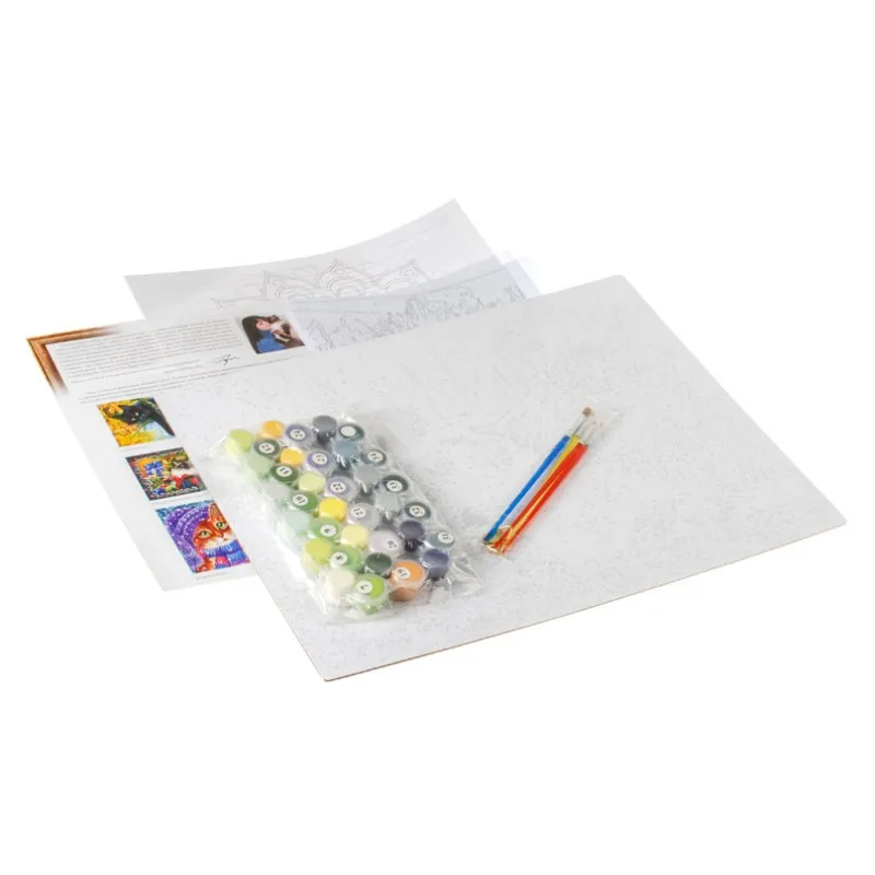 Не знаете, чем заняться в свои беззаботные дни отпуска, выходные или же каникулы? Белоснежка спешит порадовать вас и рассказать о таком увлекательном и полезном занятии, название которому – цифровое рисование! Цифрорисовашка устроена предельно просто: на основу из картона приклеена белая бумага, на которую нанесен рисунок, разбитый на пронумерованные сектора. Живопись по номерам комплектуется акриловыми красками на водной основе, которые не обладают резким и неприятным запахом, что, в первую очередь, гарантирует безопасность при использовании красок. С помощью них и вашей усидчивости результат непременно оправдает личные ожидания и заставит восхищаться любого. В наборах для цифрового творчества мы ориентируемся на достоверное воспроизведение оригинала, а это значит, что мы обеспечиваем использование авторских работ художников и качественную оцифровку изображения с мельчайшей детализацией. Экспериментируйте, творите, делитесь итогами и впечатлениями с нами! Комплектация: 1. Картон с контурным рисунком 2. Контрольный лист со схемой 3. Набор акриловых красок на водной основе 4. Кисти - 4 шт. 5. Листовка о художнике 6. Схема "Магическая мандала"- 1 шт. Характеристики: Художник – Ирина Гармашова Серия - кошки Размер - 30*40 см. Тип красок - акриловые быстросохнущие Количество цветов - 35 Упаковка - конверт из плотного картона Торговая марка - Белоснежка Страна производства - Китай