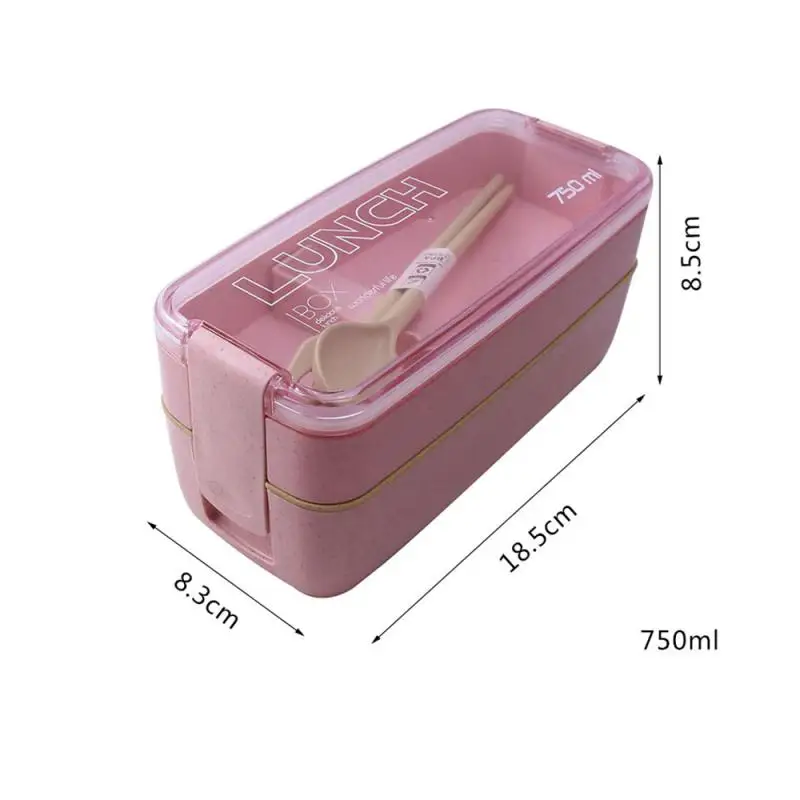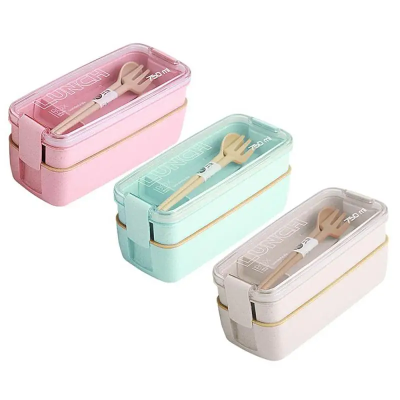 Медицинский материал, 2-х слойный Ланч-бокс, контейнер для микроволновой печи, зеркальная Пшеничная солома 750 мл, Ланч-бокс, японский пищевой контейнер Bento