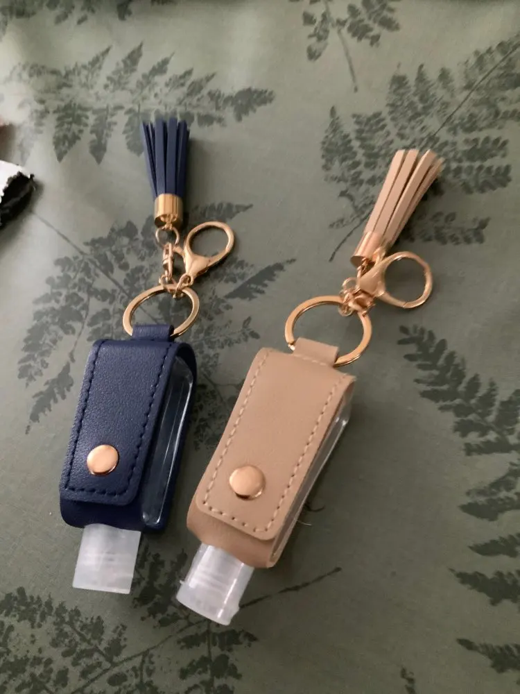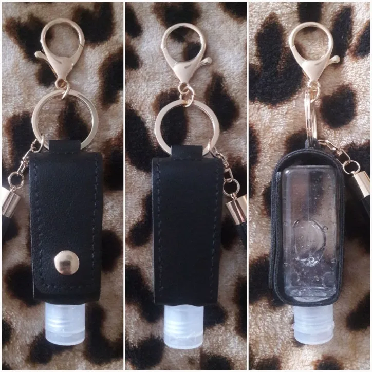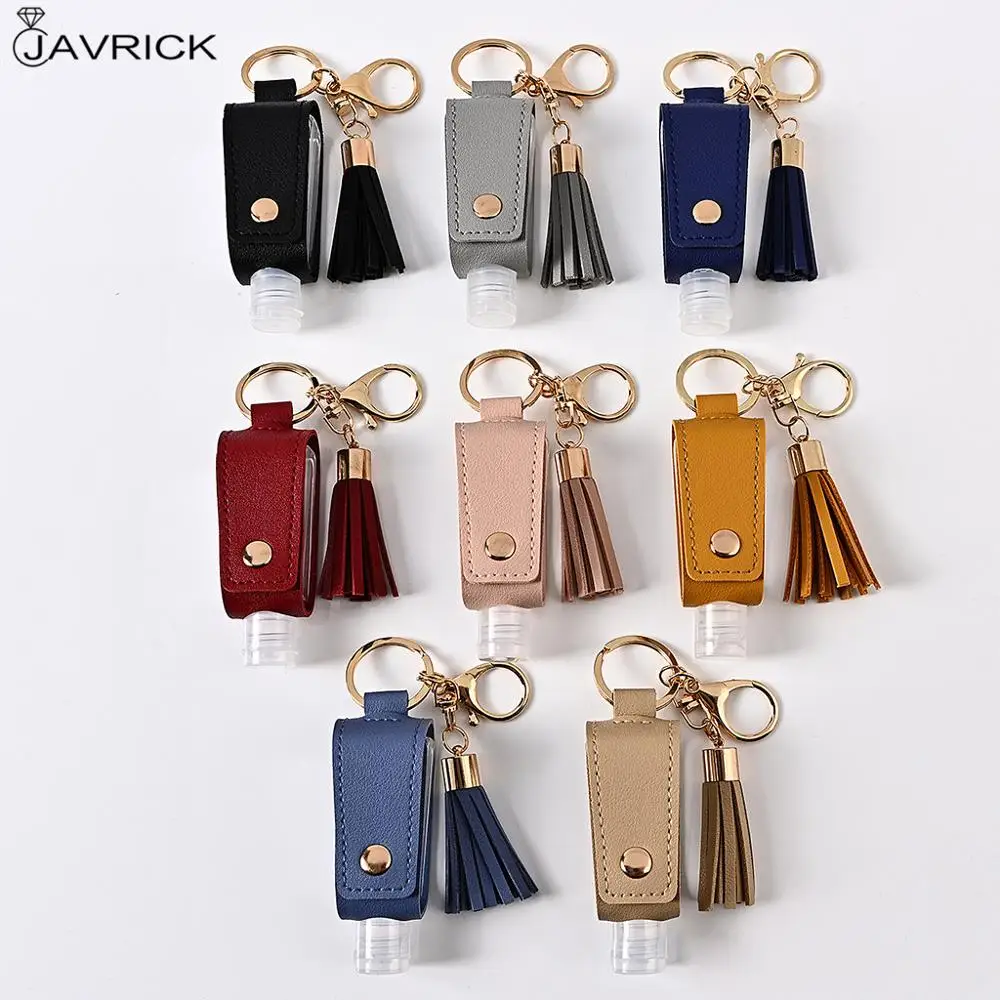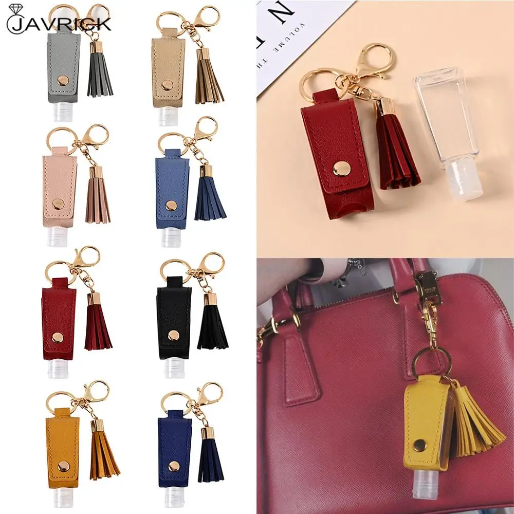 Портативная пустая герметичная пластиковая дорожная бутылка для дезинфицирующего средства для рук, 30 мл, с кисточками, кожаный держатель для ключей