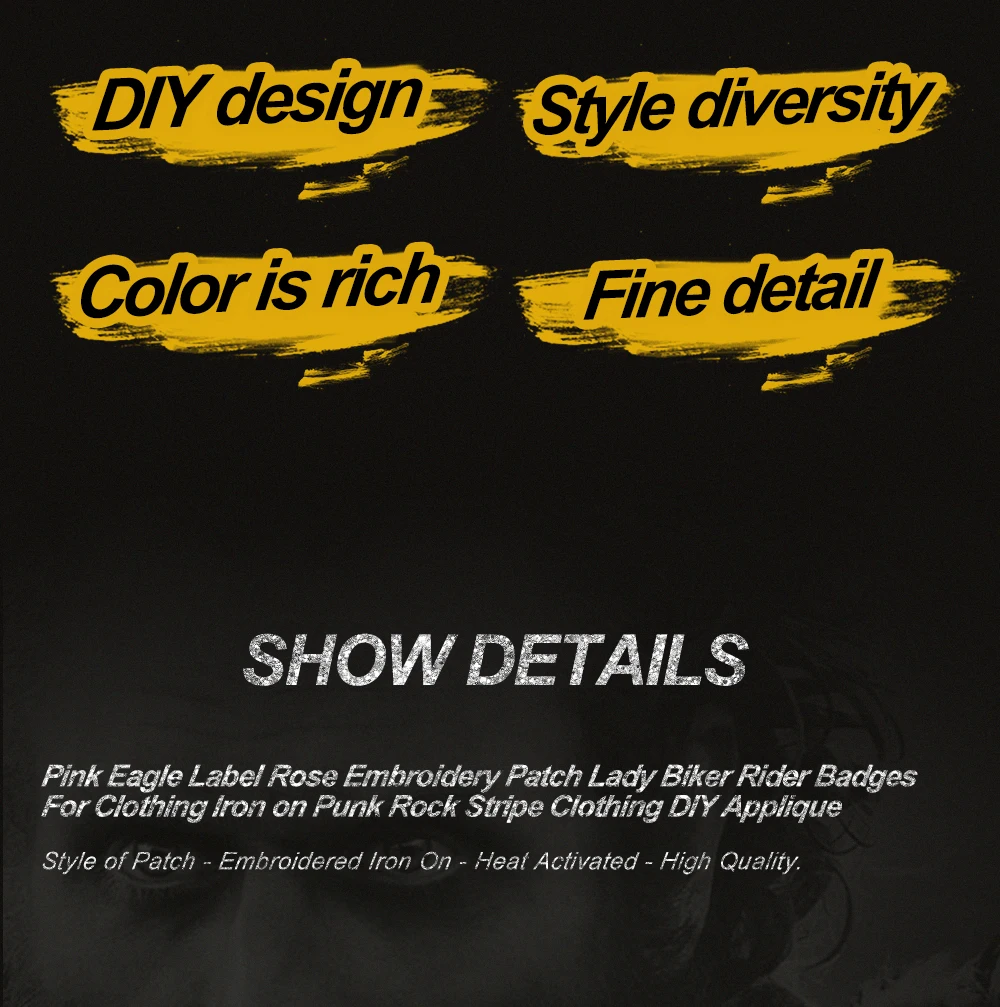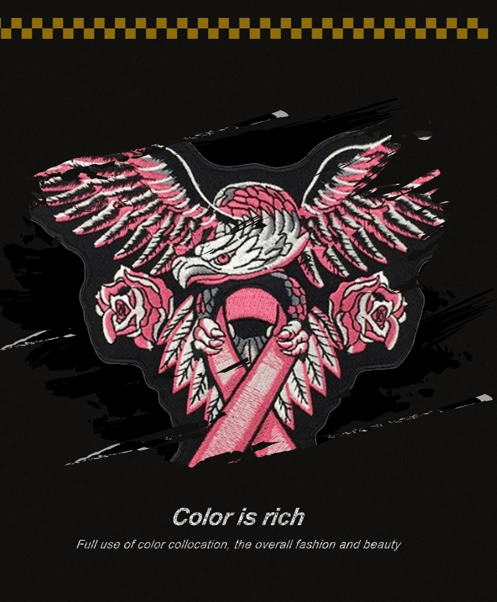 Нашивка С Вышивкой розовый Орел, роза, Женский Байкер, Райдер, значки на одежду, термоклейкая нашивка в стиле панк-рок, нашивка для одежды, аппликация