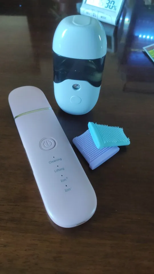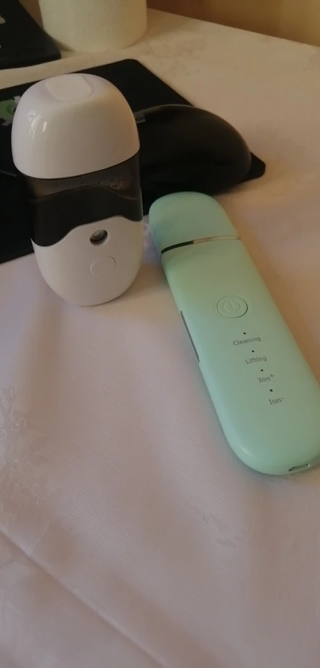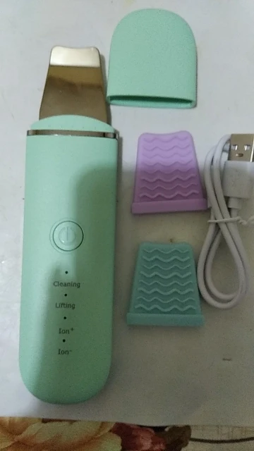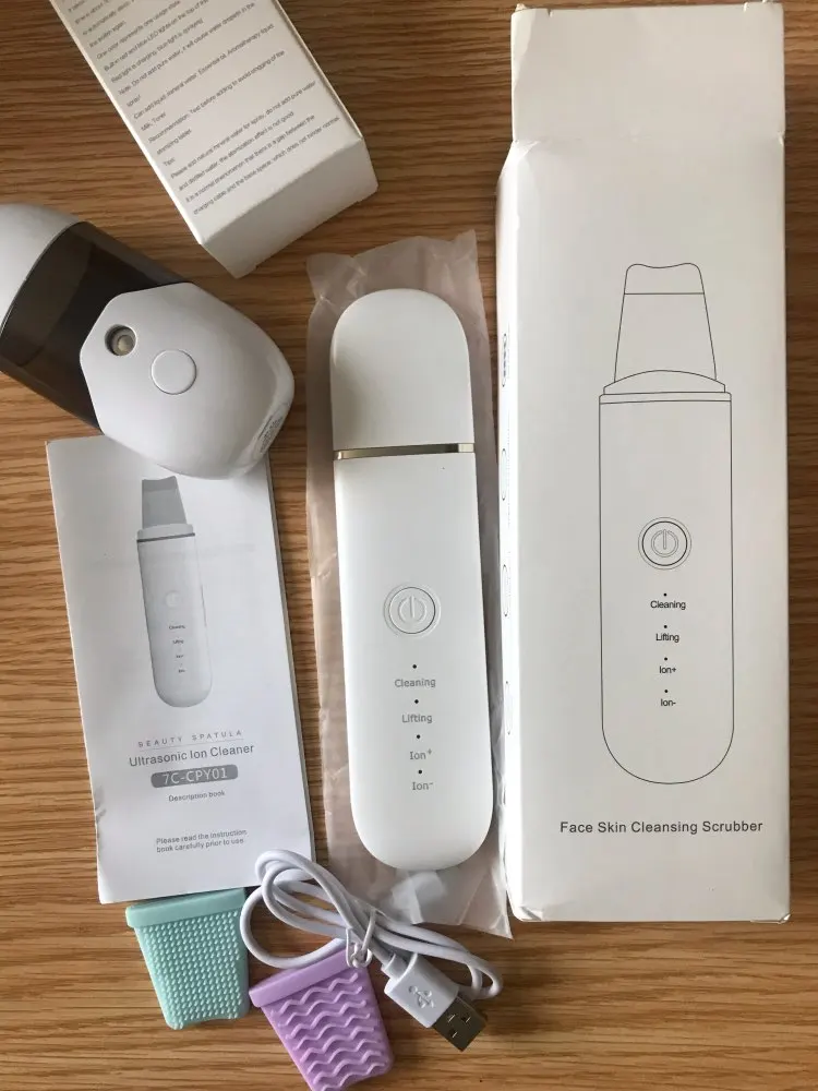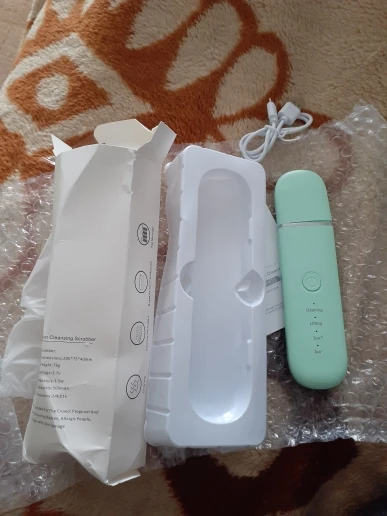 Отличный УЗ - скраббер, распыление жидкости происходит. В комплекте кабель для подзарядки. Это устройство очищает и эксфолиирует кожу, выполняет ультразвуковую чистку кожи по жидкостной среде (я делаю обычно по тонику-лосьону или Хлоргексидину). Отличный товар, спасибо продавцу!!!