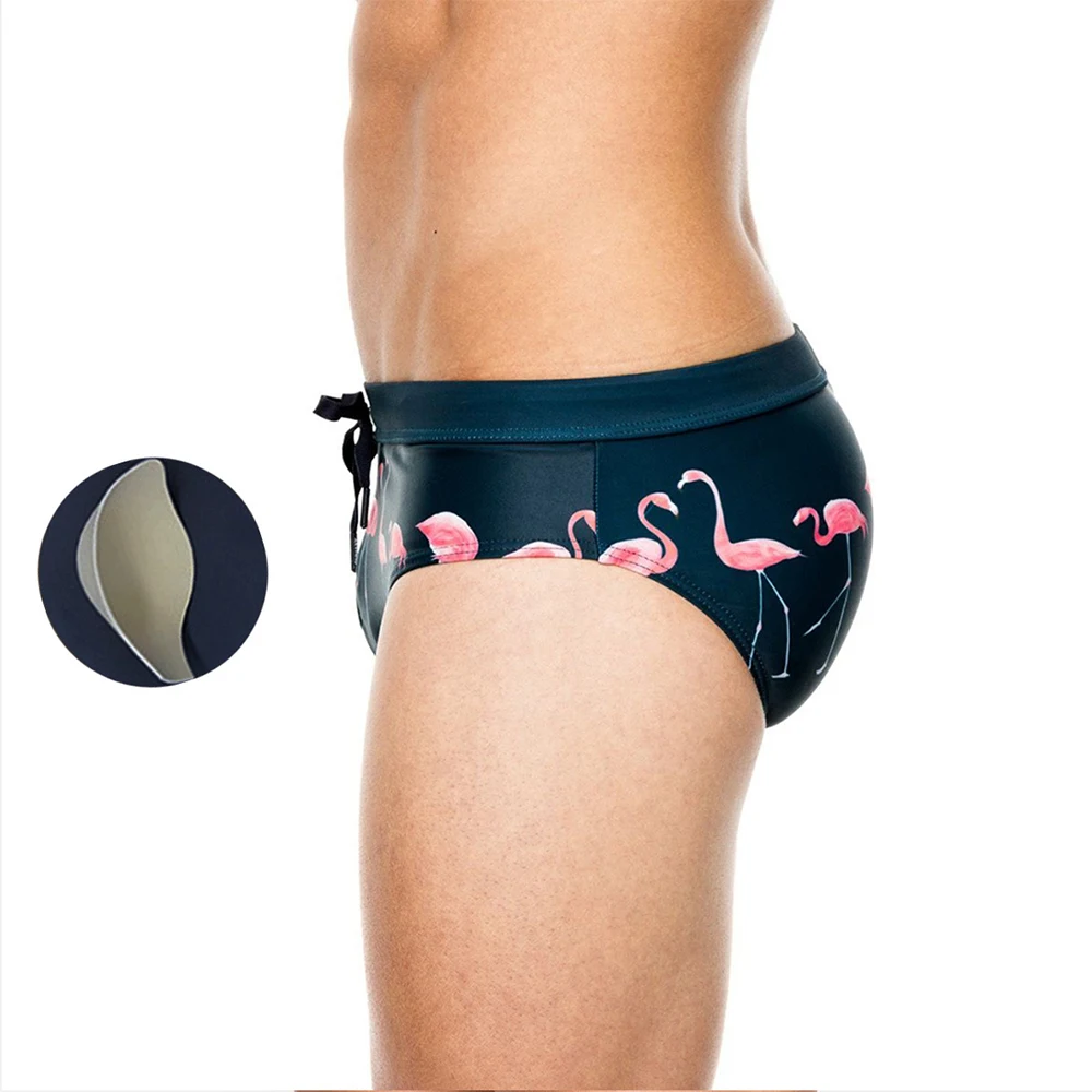 Купальник мужской с принтом фламинго, пикантные пляжные шорты с чаш...