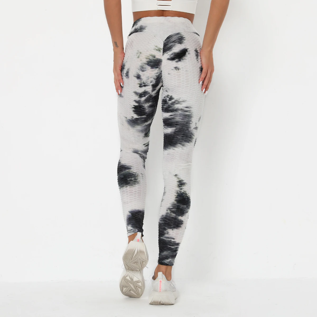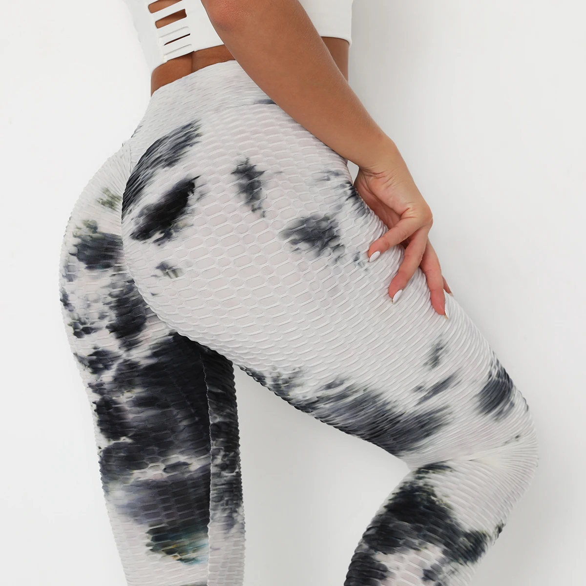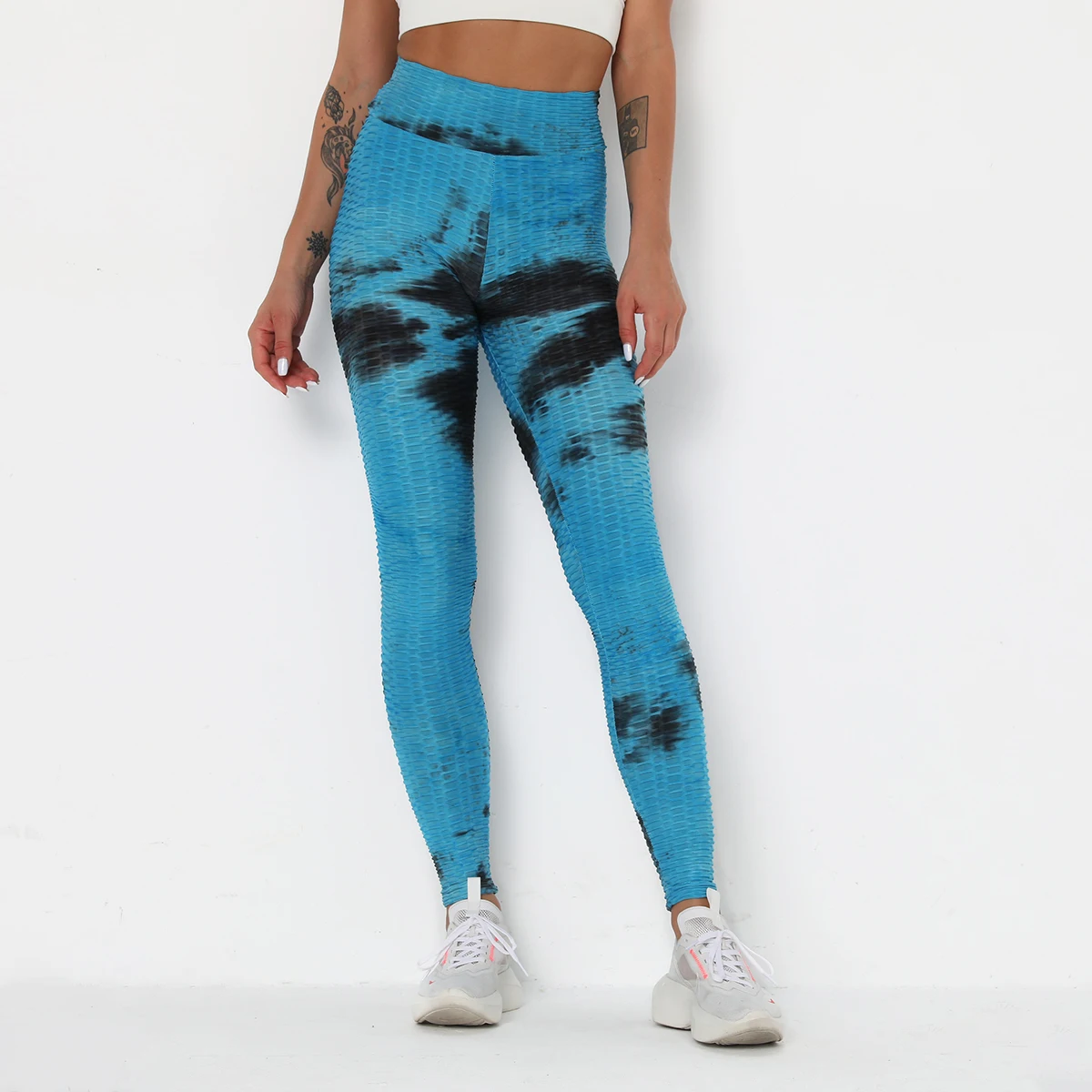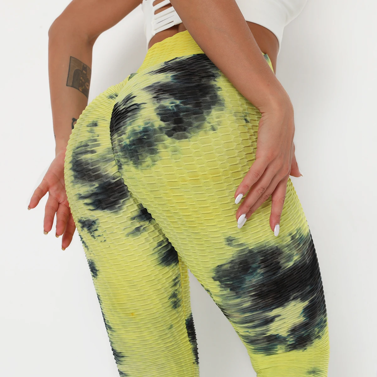 Бесшовные Многослойные леггинсы, женские чернильные жаккардовые штаны для йоги с завязкой, облегающие спортивные Леггинсы с завышенной талией для фитнеса