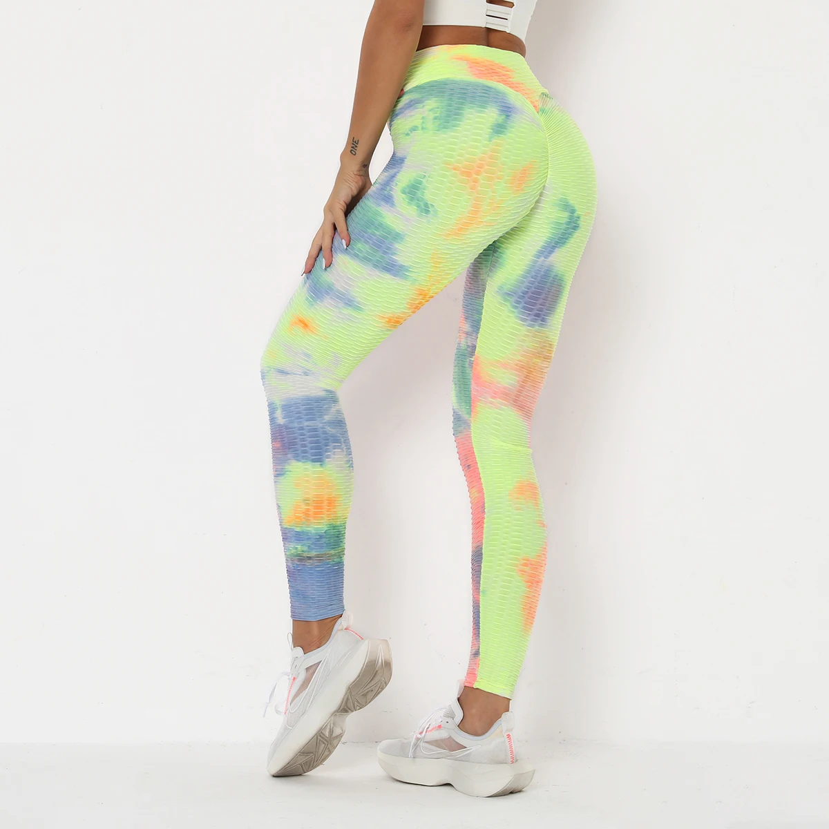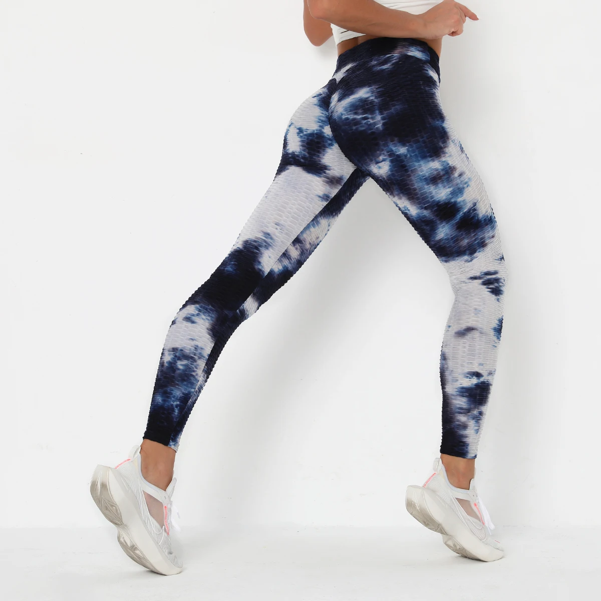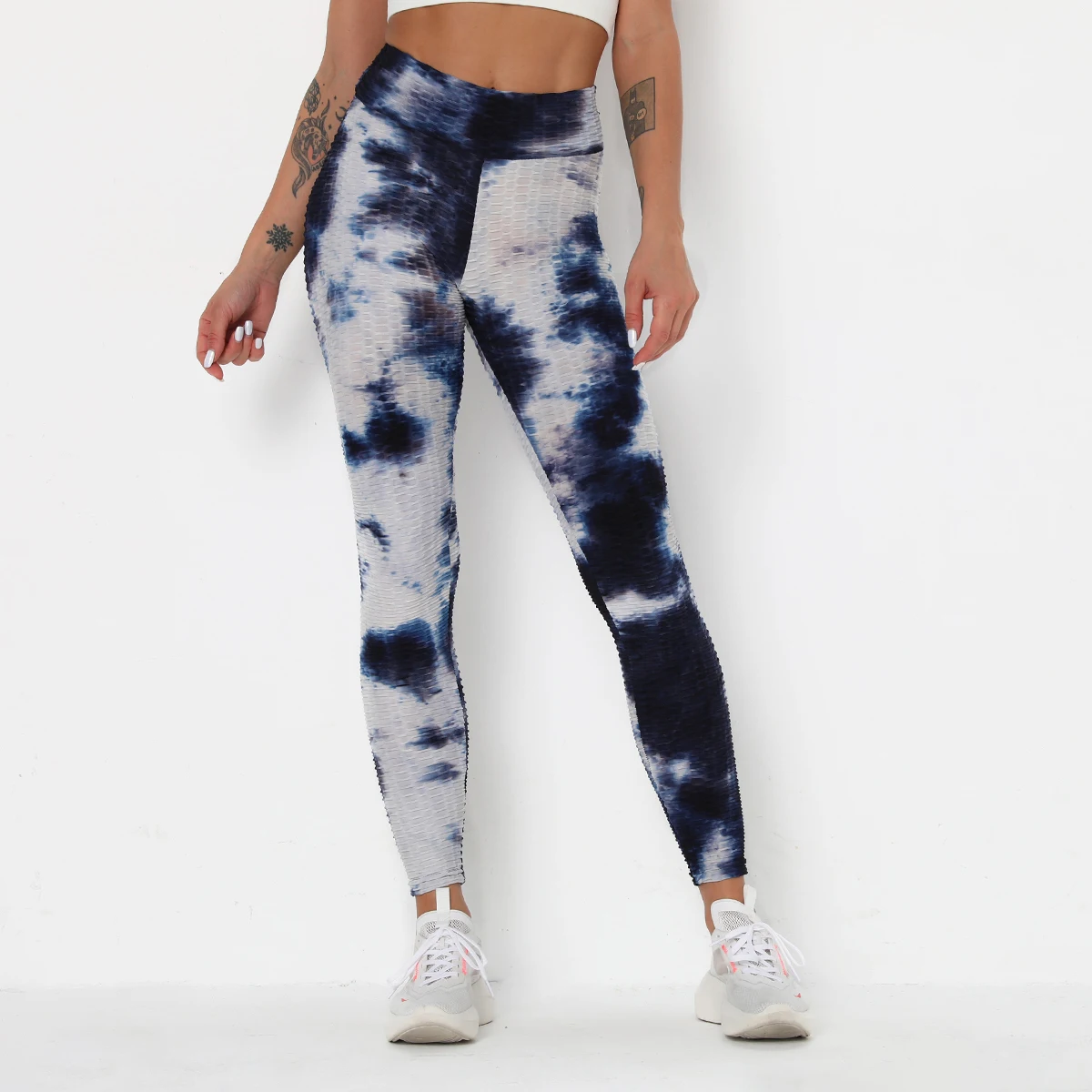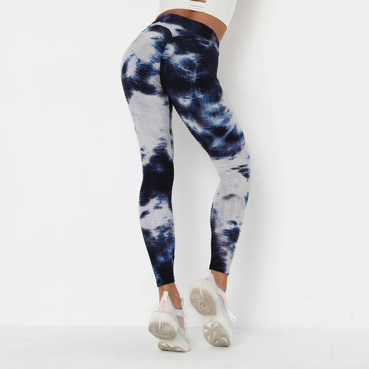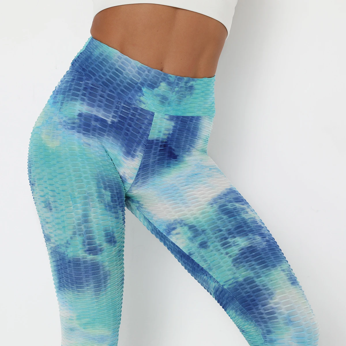 Бесшовные Многослойные леггинсы, женские чернильные жаккардовые штаны для йоги с завязкой, облегающие спортивные Леггинсы с завышенной талией для фитнеса
