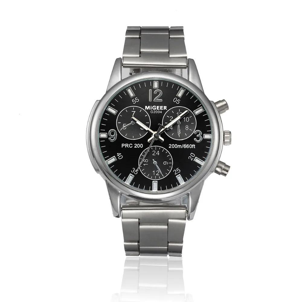 Часы наручные мужские кварцевые из нержавеющей стали, Классические Модные Аналоговые, со стразами и стеклянным ремешком, серебристые, подарок для мужчин