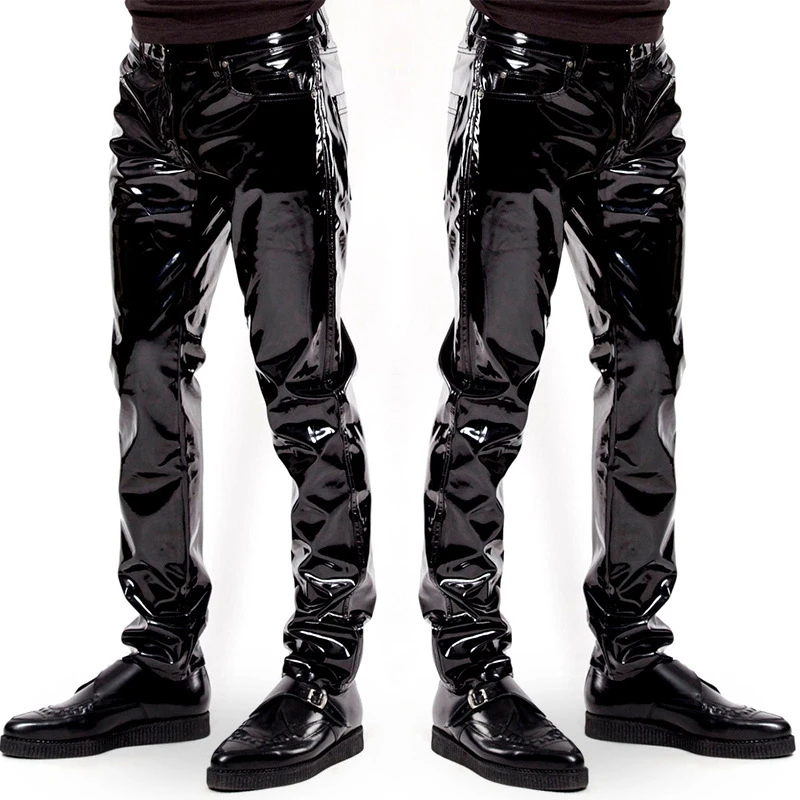 Мужское сексуальное черное нижнее белье размера плюс из искусственной кожи экзотические брюки из ПУ латекса костюм кошки на молнии из ПВХ сценическая Клубная одежда гей-Фетиш брюки