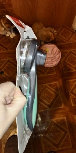 The Brush is fine. Я думаю, что у него немного маленькая голова; Продукт большой и имеет длинную ручку, но круглая голова немного мала для большой собаки. Но хорошо расчесывается и волосы выходят идеально, затягивая кнопку. Хорошая покупка.