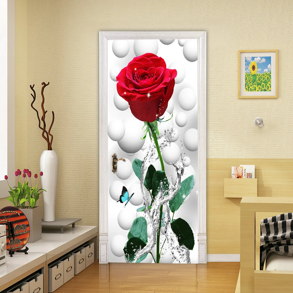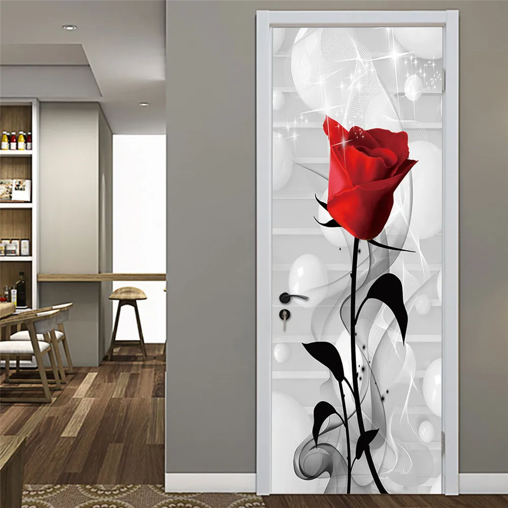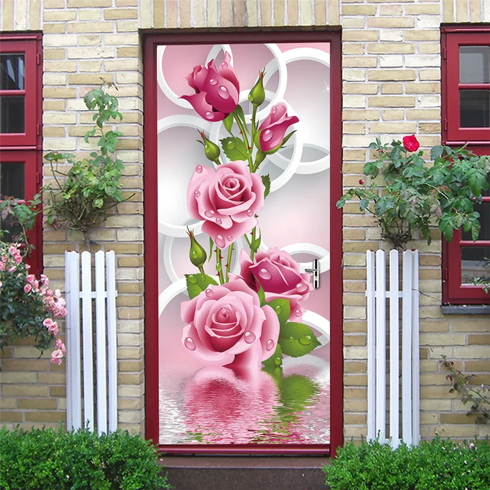 Наклейка на дверь, водостойкая, из ПВХ, с природным пейзажем, с цветочным принтом