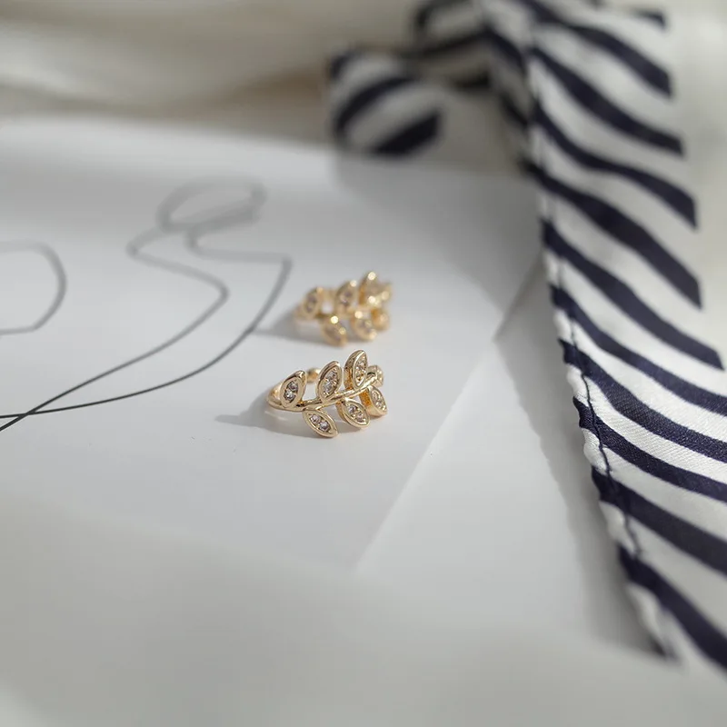 Каффы для ушей женские, с золотыми листьями, 1 шт., циркониевый заж...