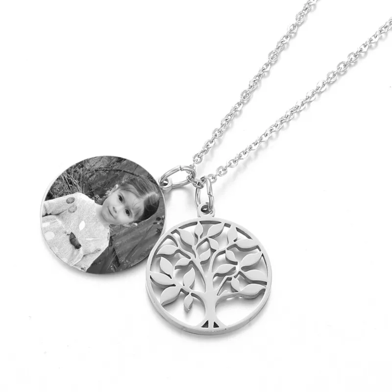 Семейное древо жизни, ожерелье, персонализированное, на заказ, фото, имя, ожерелья, нержавеющая сталь, на заказ, Круглый Кулон, именная табличка, ожерелье