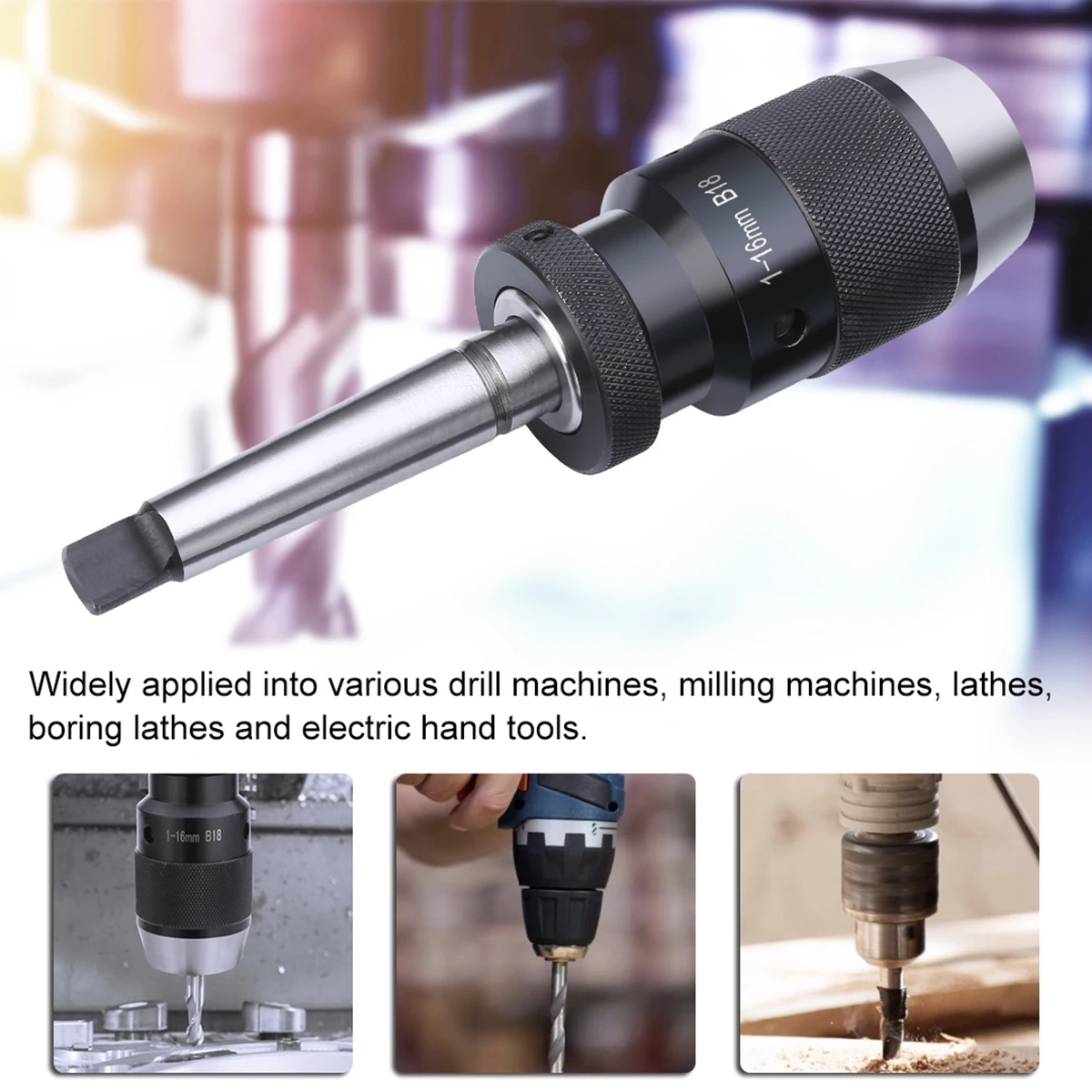 Сверлильный патрон B18, 1-16 мм, оправка для сверлильного патрона, самозатягивающийся, без ключа, оправка для сверлильного патрона, MT2-B18, оправка для токарного сверла MK2