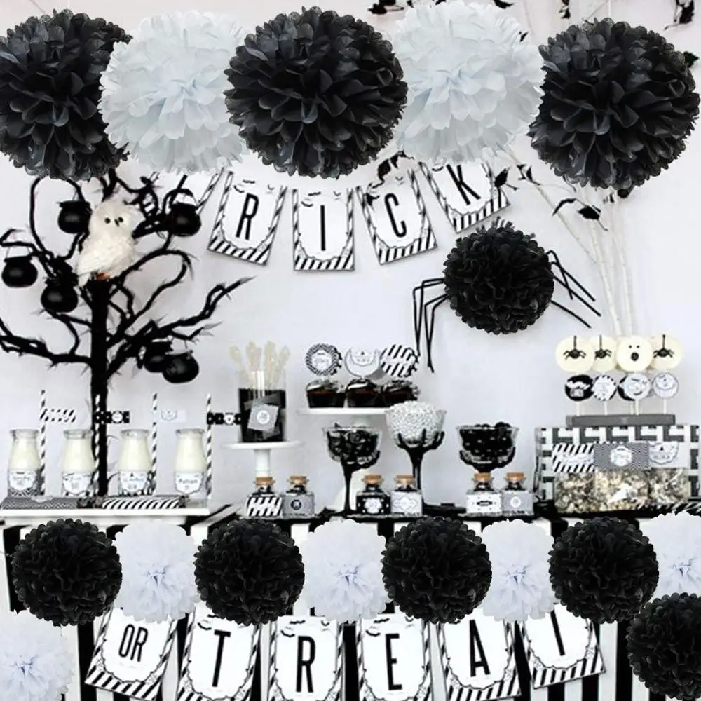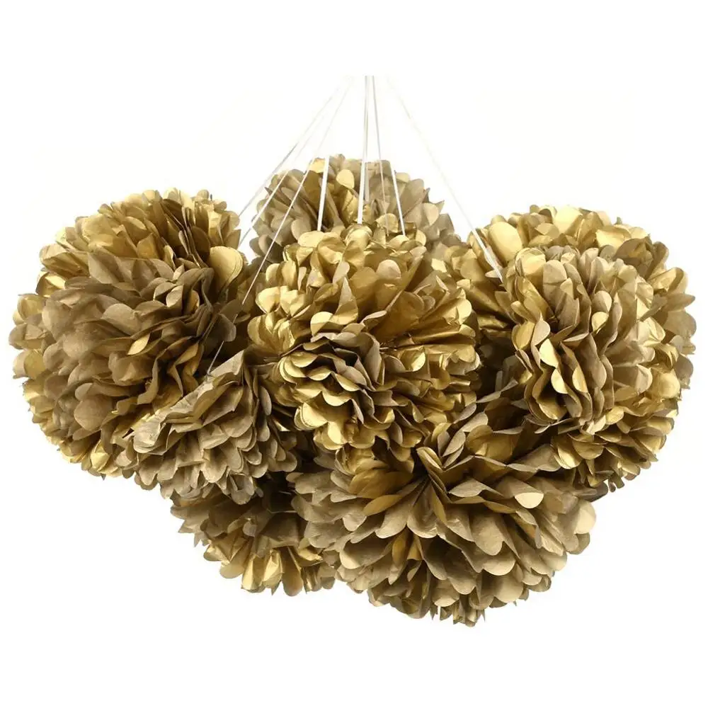 Ручной работы, тканевые помпоны, цветы для винтажных свадебных вечеринок и мероприятий, золотистого, черного цвета, украшение из бумажных шариков