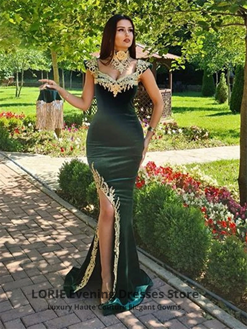 LORIE темно-зеленое марокканское платье-Кафтан Вечернее платье Русалка Формальное Дубай Формальное платья знаменитостей с кружевами сексуальное с высоким разрезом размера плюс