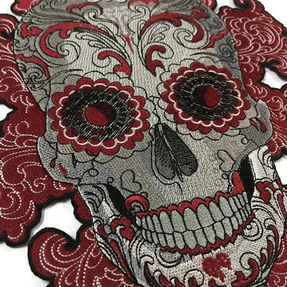 Цветок Сахар Череп Вышивка Железо на заплатках для одежды большой размер Байкерский рюкзак куртки DIY MC значки Высокое качество аксессуар