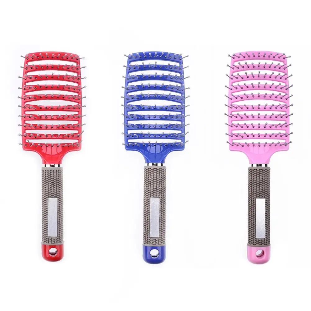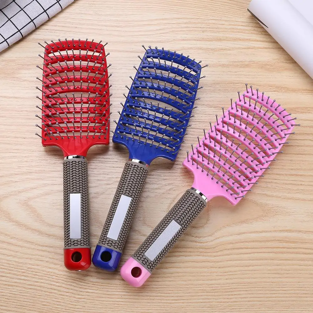 Пластиковая нейлоновая Антистатическая щетка для волос с изогнутыми рядами, Женский Массажер для кожи головы, расческа для парикмахерских салонов, инструменты для укладки