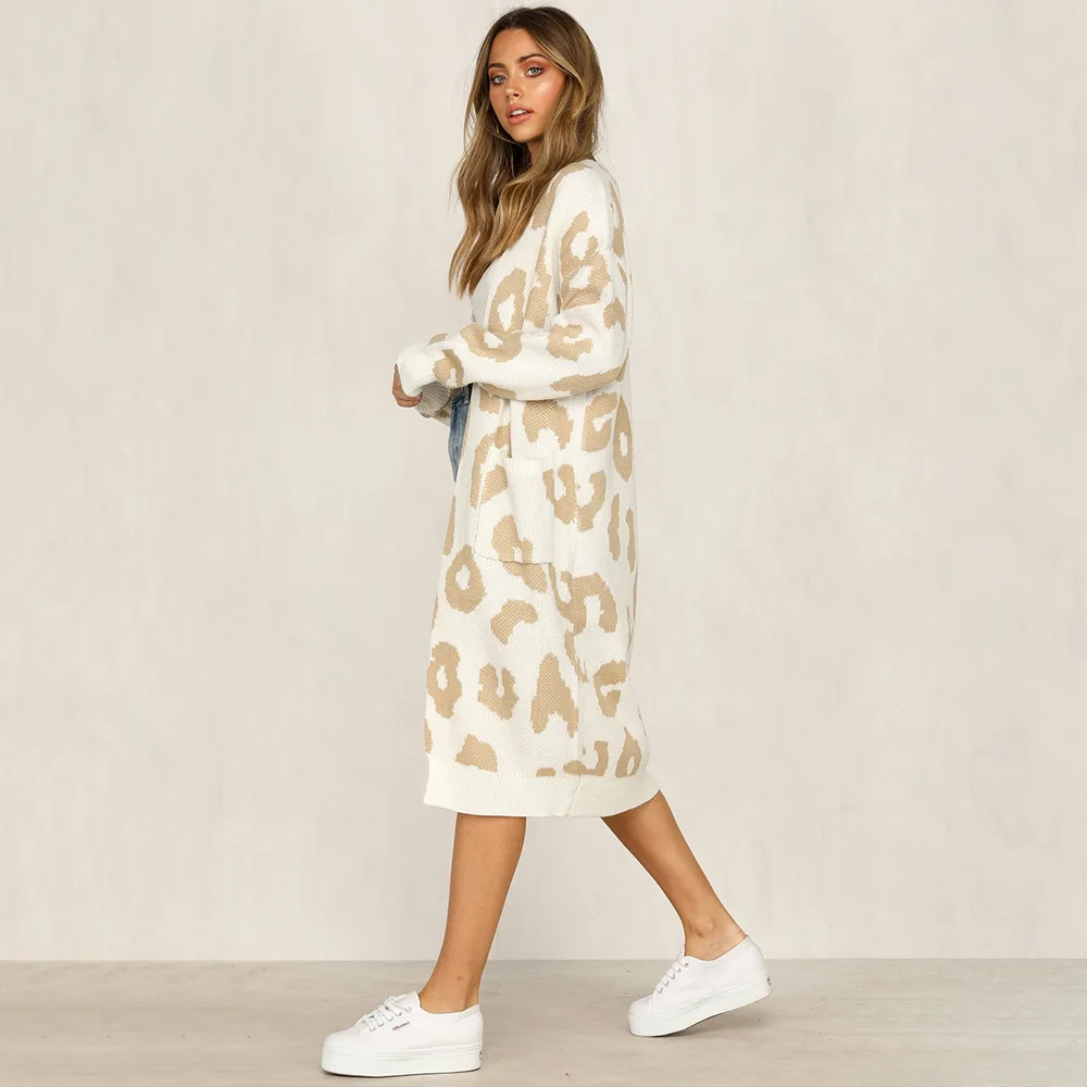 Женский леопардовый кардиган, длинный вязаный кардиган с длинным рукавом, верхняя одежда для отдыха, пальто в стиле Instagram, осень 2022