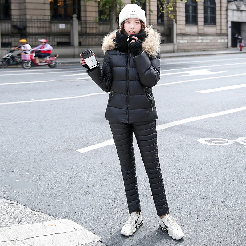 LISYRHJH женская зимняя парка 2020 с воротником из натурального меха с капюшоном хлопковая куртка Пальто Штаны Костюмы женские пуховые Хлопковые наборы из 2 частей теплые