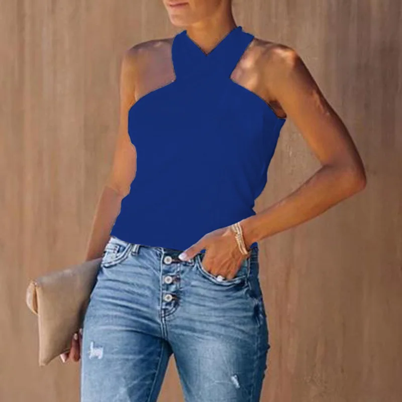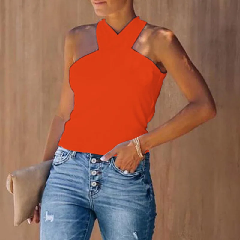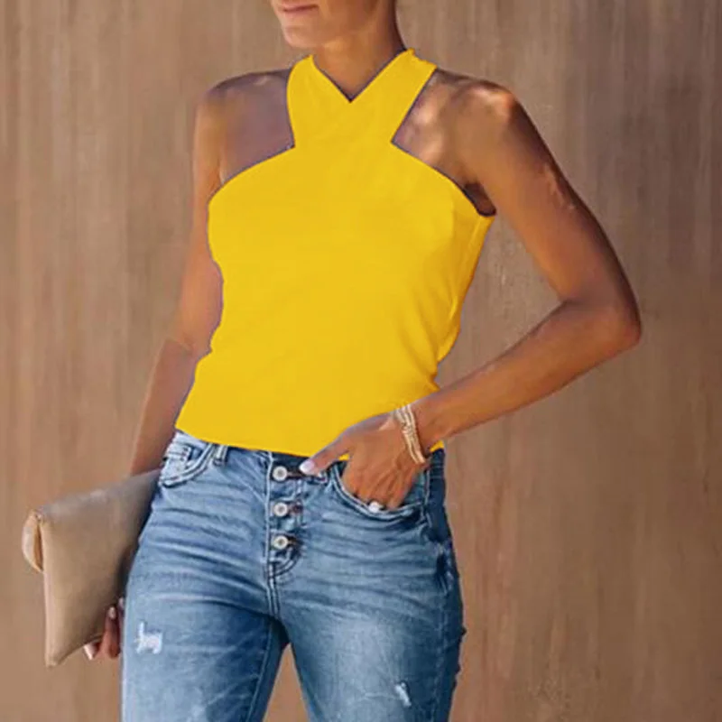 Летний женский топ без рукавов, с открытой спиной и узлом