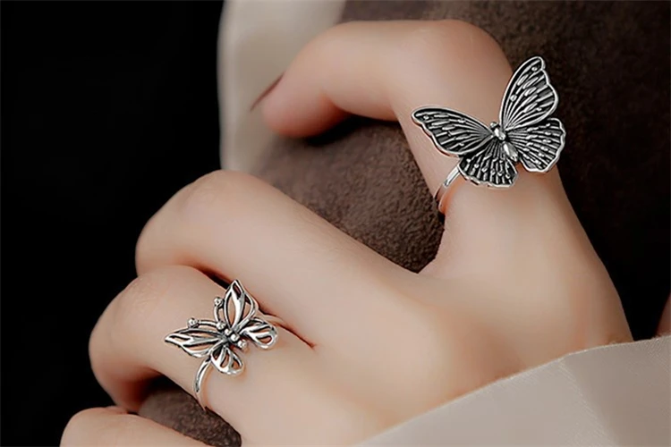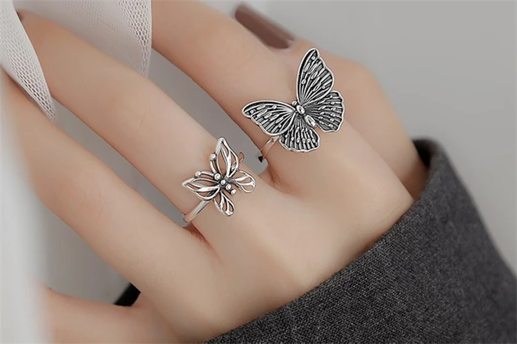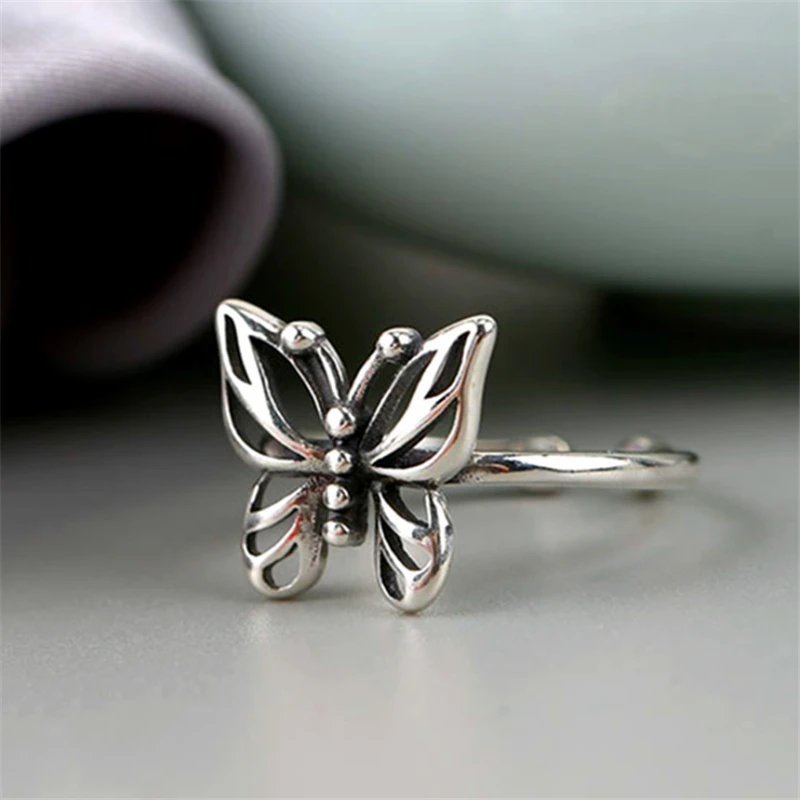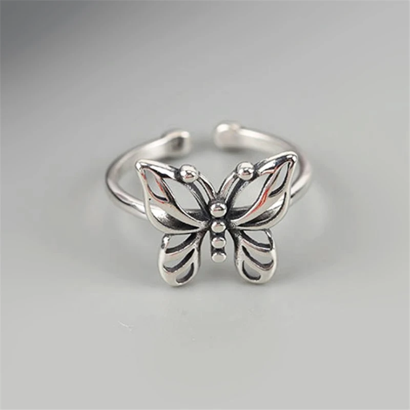 Женское кольцо с бабочкой, широкое винтажное Открытое кольцо из серебра 925 пробы в Корейском стиле с ажурными животными, ювелирные изделия